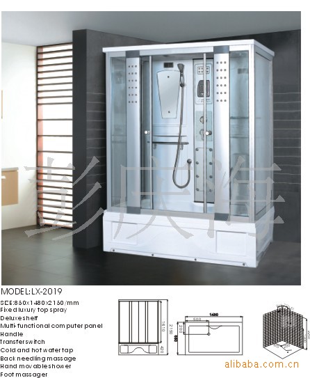 ●進水管道接口在淋浴房背板水龍頭位置后面.電源接口在淋浴房頂端