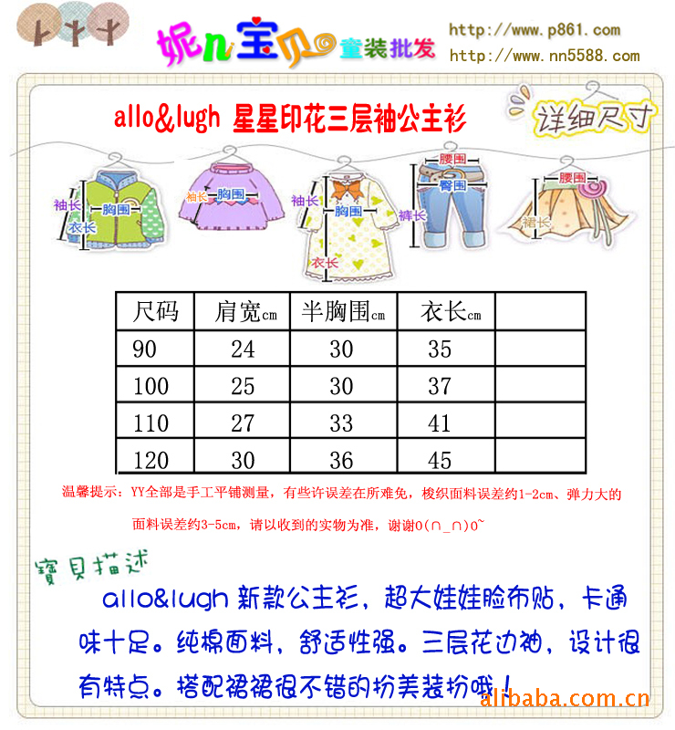 外貿童裝原單批發 2011韓版allo&lugh 藍色星星印花三層袖公主衫