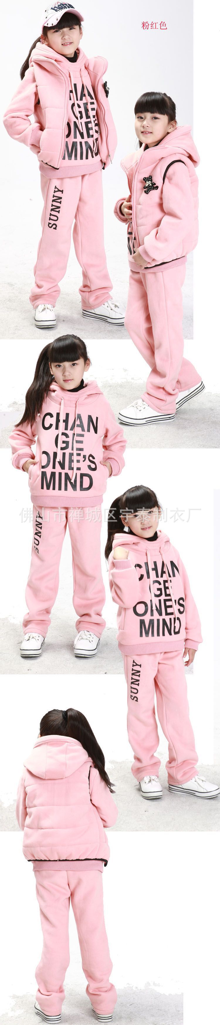 冬款大童全棉女童套裝,3件套大童套裝,大衛衣套裝,