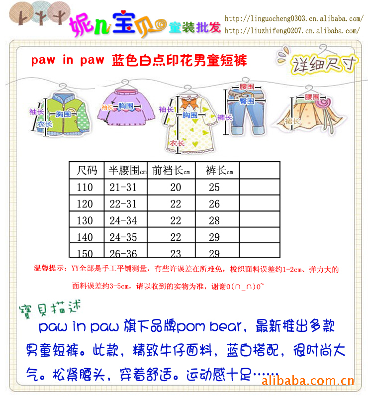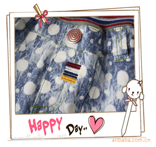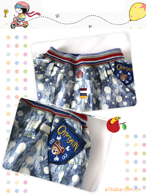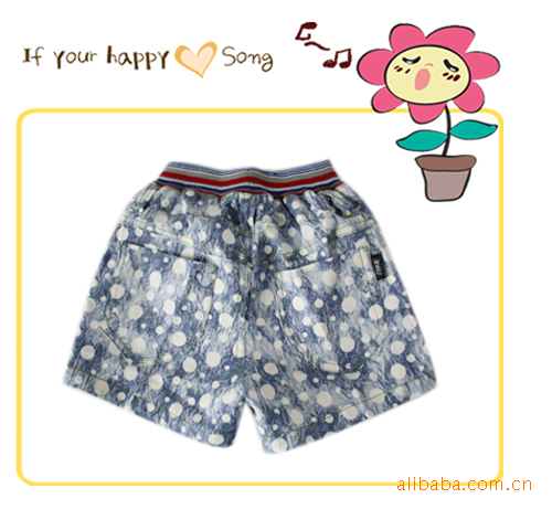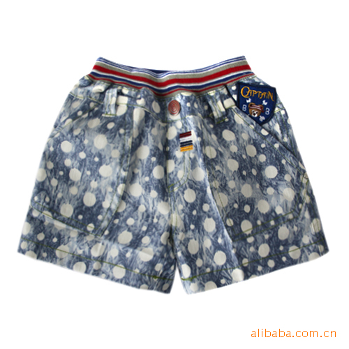 青島外貿庫存原單童褲批發2011日韓paw in藍色白點印花男童短褲