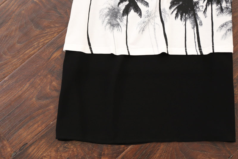 批發供應 新品 燙鉆椰樹印花 莫代爾雪紡假兩件套連衣裙 A37L71