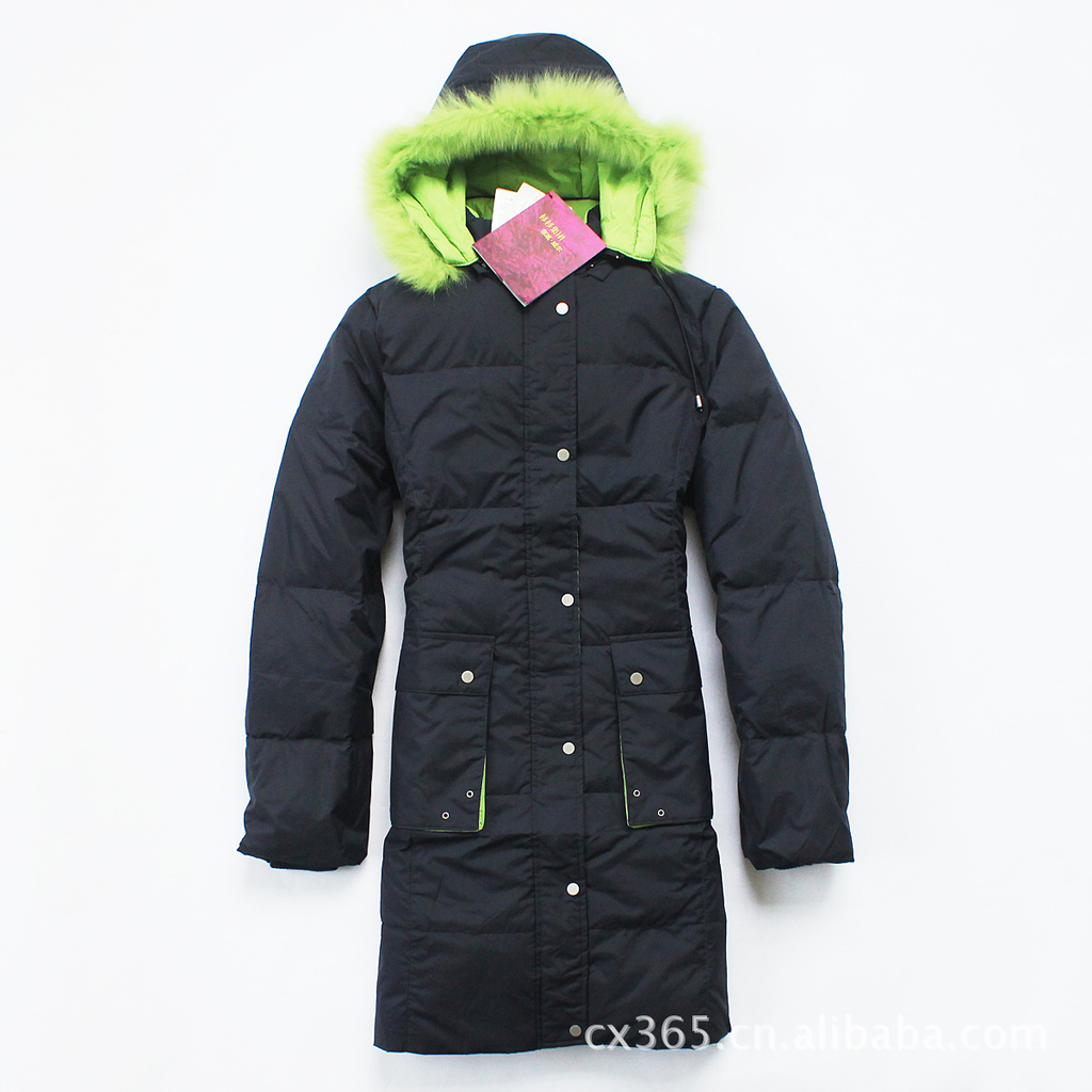 描述: 杉*杉集團旗下羽絨品牌菲萊威爾女式連帽黑色中長款羽絨服,足量羽絨填充,細節圖如下: