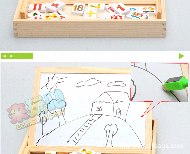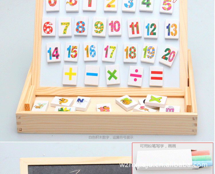 這是一款讓孩子喜歡學習的玩具(帶有磁性),在游戲中您可以先將數學加減法或英文列出。