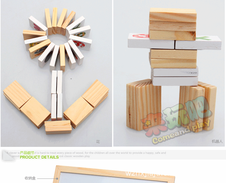 也能夠將零件排列起來做多米諾游戲。在游戲中提高孩子的認知能力。