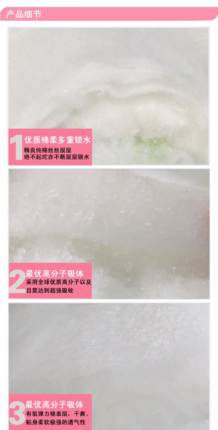 4、雙重立體護圍設計,杜絕側漏,快速導流、鎖濕絕不回滲,全方位吸水體,雙層超吸收,尿量更多也不怕,瞬間吸水超薄層,吸收更迅速