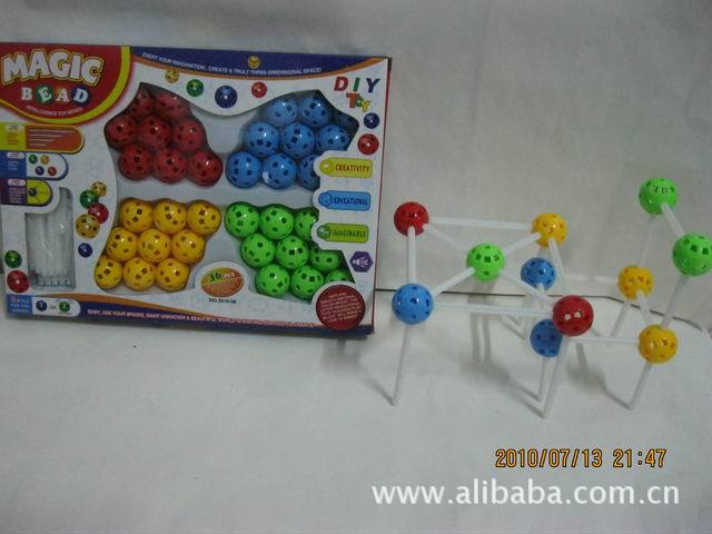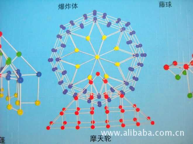 桿可以插入積木球上的任意的小孔。這款玩具可以發揮孩子的想象力,創造一個真正的立體空間!