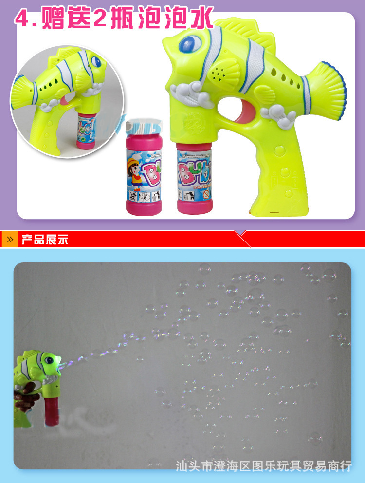 2--新的泡泡槍次使用時要扣動扳機直至泡泡水從噴口處流出才可以,然后再打泡泡就會出來了。