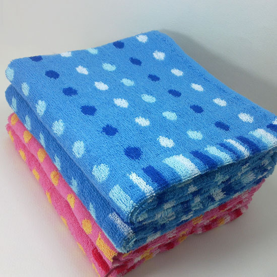 批發孚日外貿尾單毛巾紅藍小圓點條紋純棉提緞毛巾