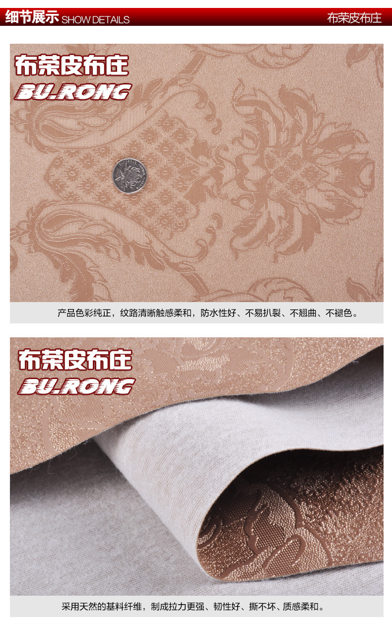 麒翔皮革成立于1999年,公司總部設立在浙江省義烏市,公司擁有完整科學的質量管理體系。網店布榮貿易有限公司誠信經營、服務周到、在業界得到廣泛的認可。十幾年來本公司專注生產經營各種PU、PVC、壓花人造革,適用于皮帶、箱包、服裝、證件、商標、球類、沙發、玩具、鞋、工藝品及裝飾?;y領先獨特、種類繁多、并配合客戶的產前開發!常規貨都有大量現貨批發!