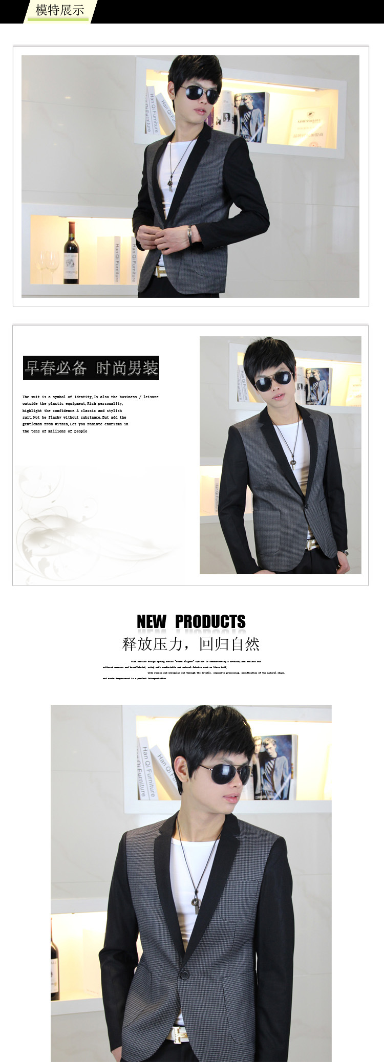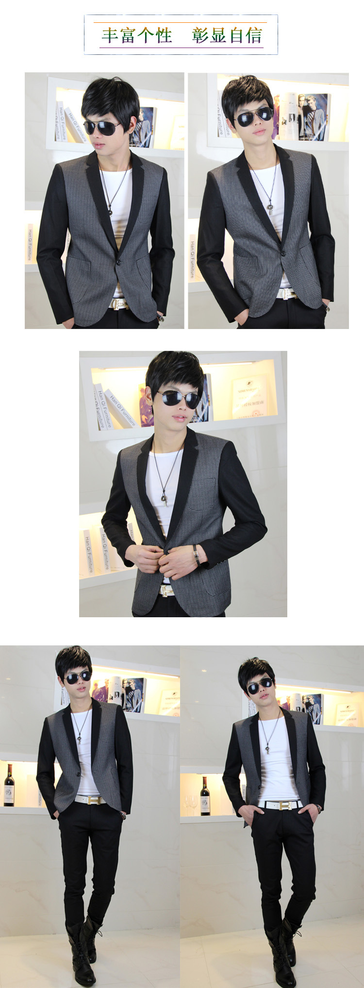 2013秋裝休閑格子西服 男士時尚修身西服上衣 淘寶貨源