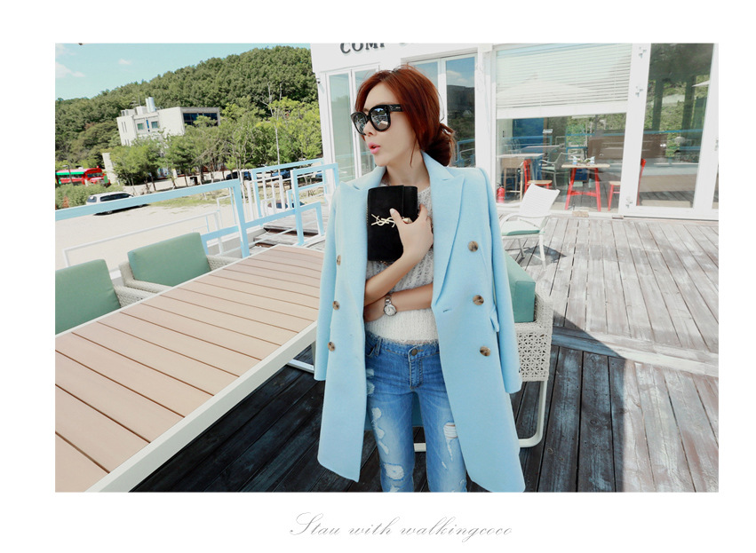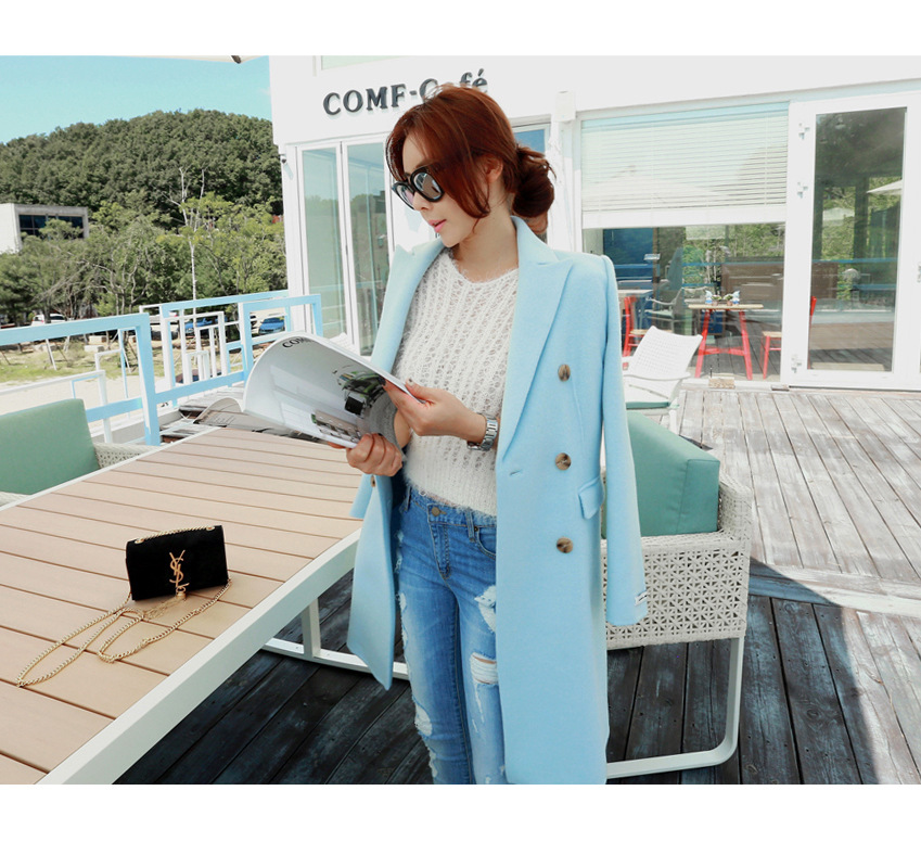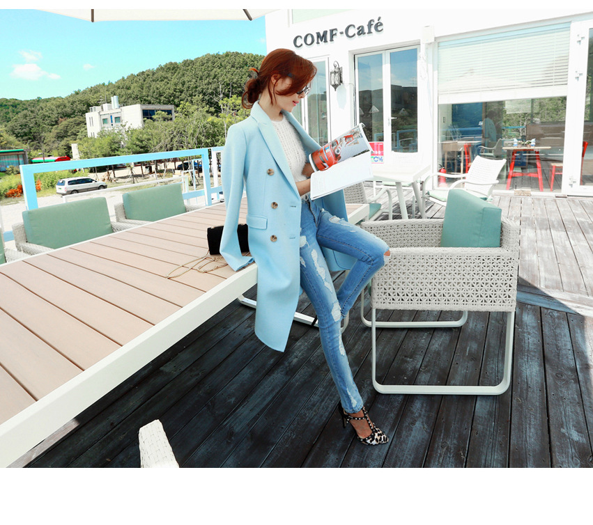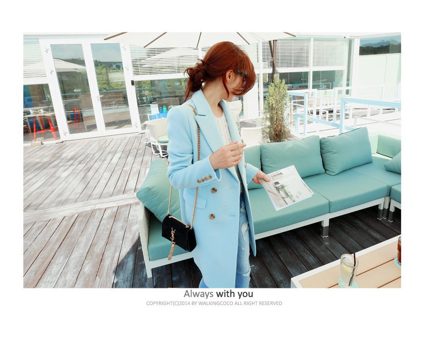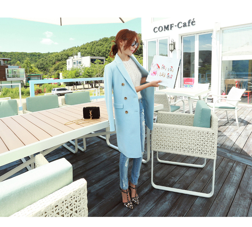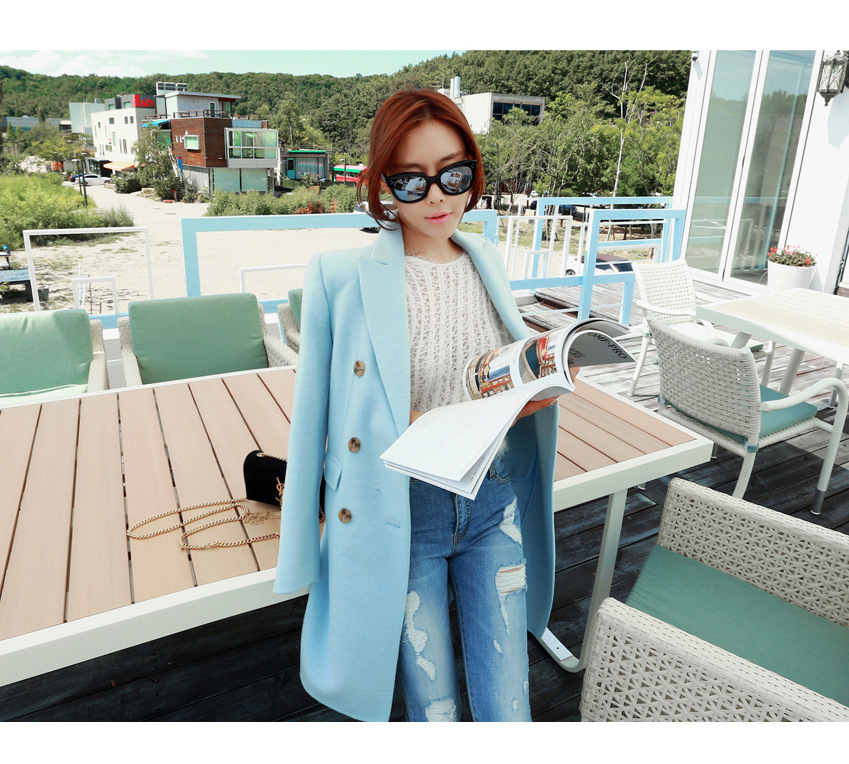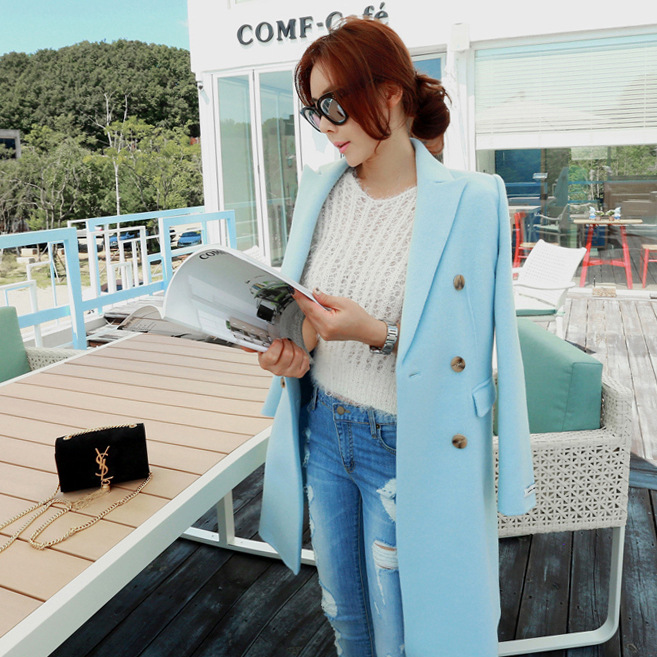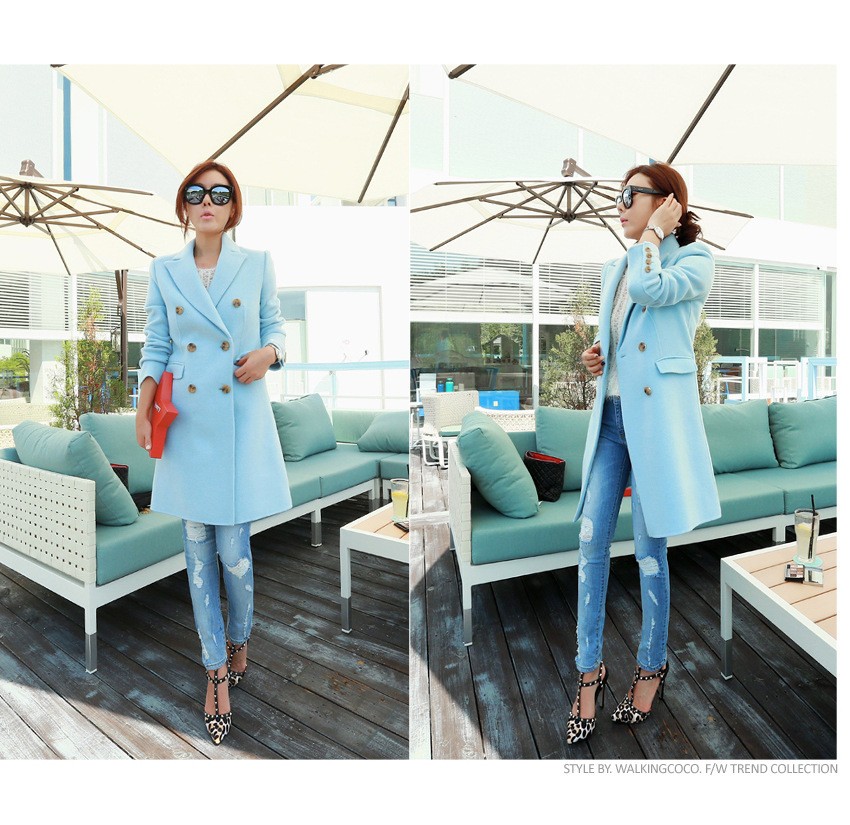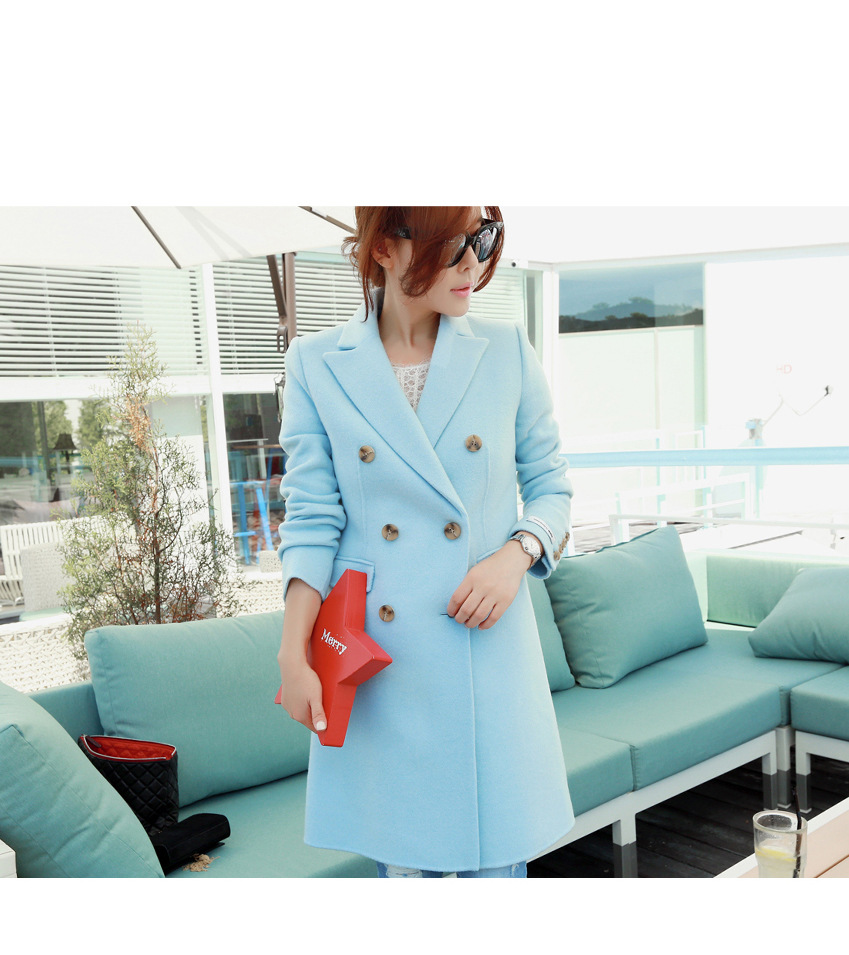 2015秋冬熱銷新款韓版顯瘦雙排扣中長款羊毛呢外套毛呢大衣9522