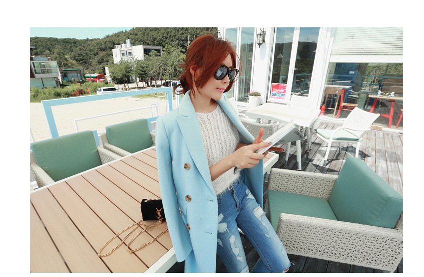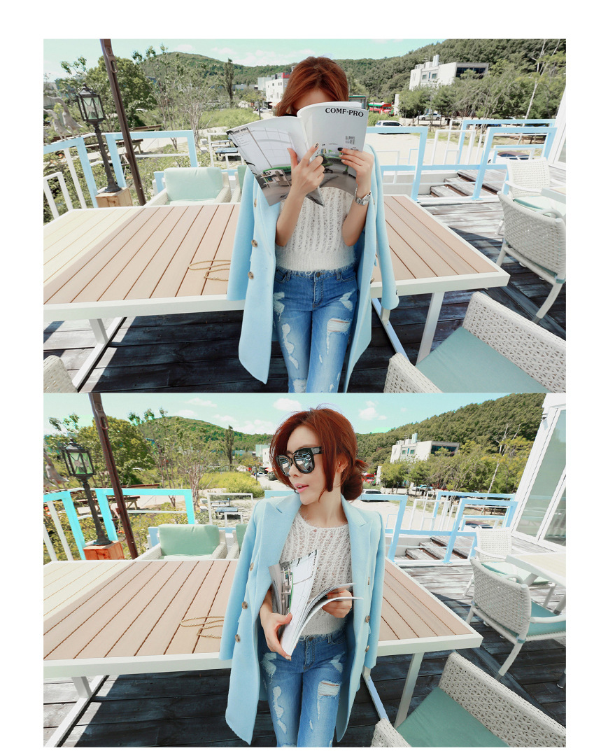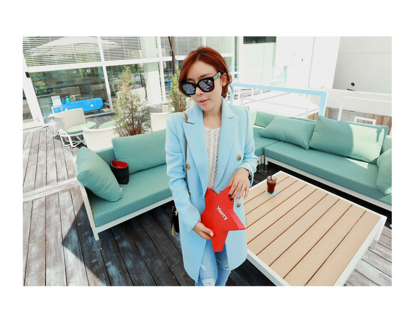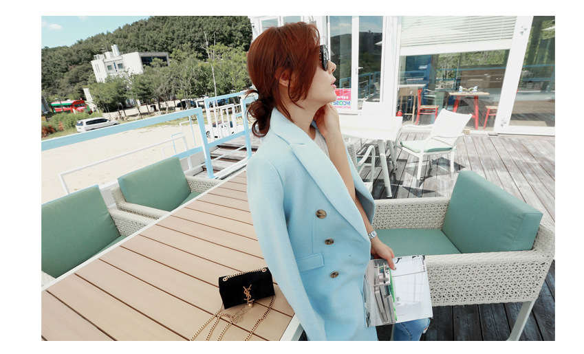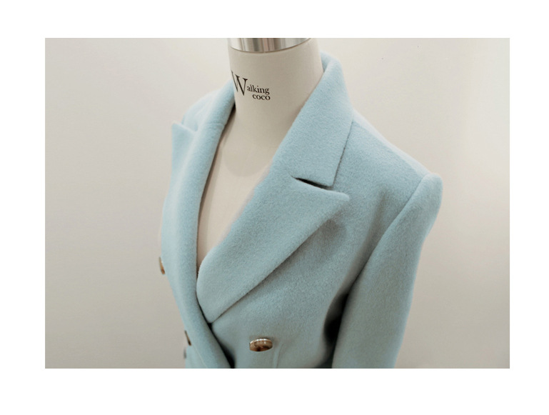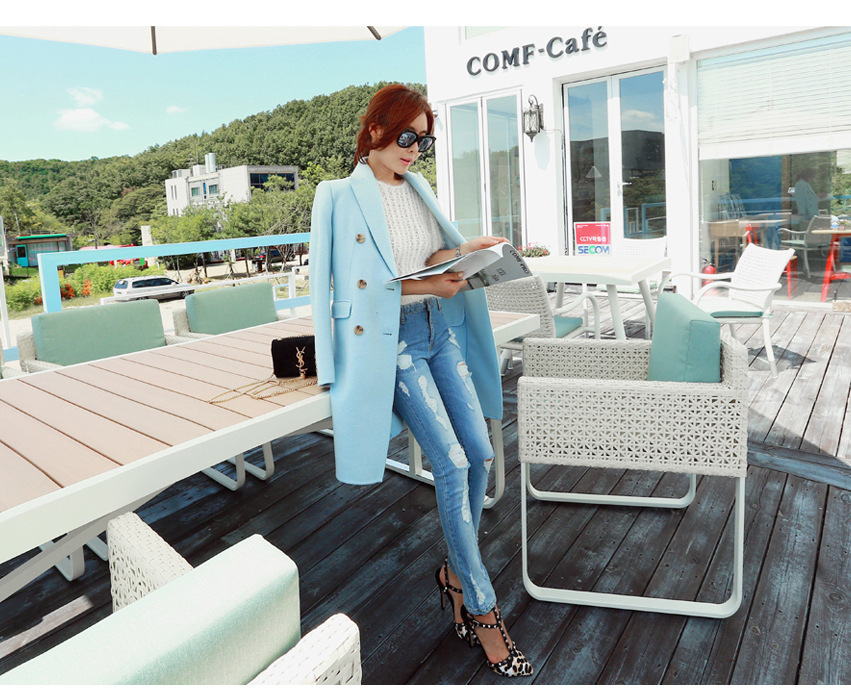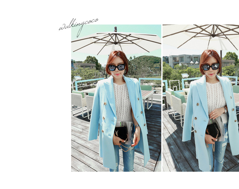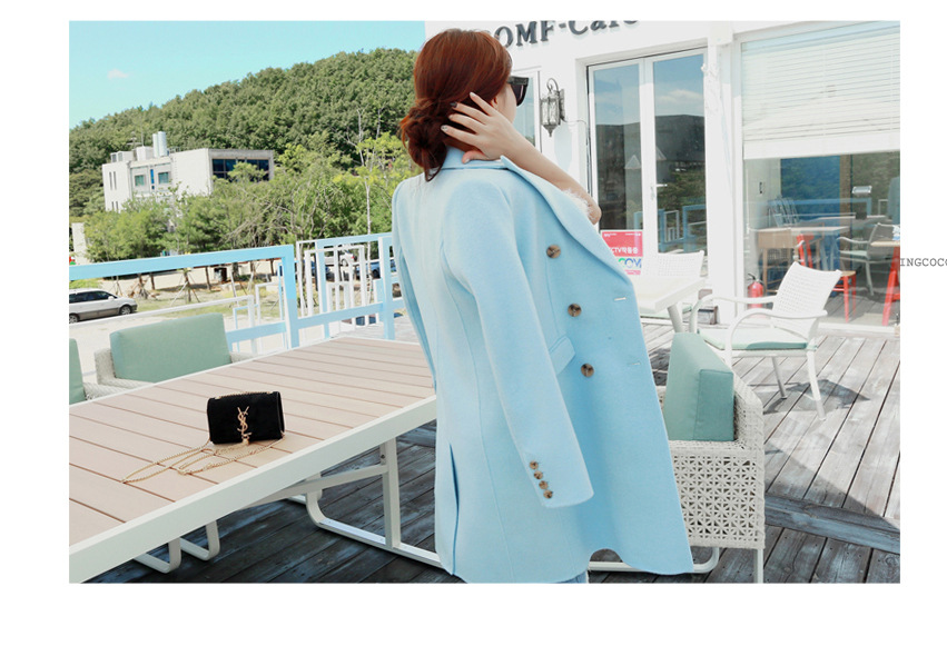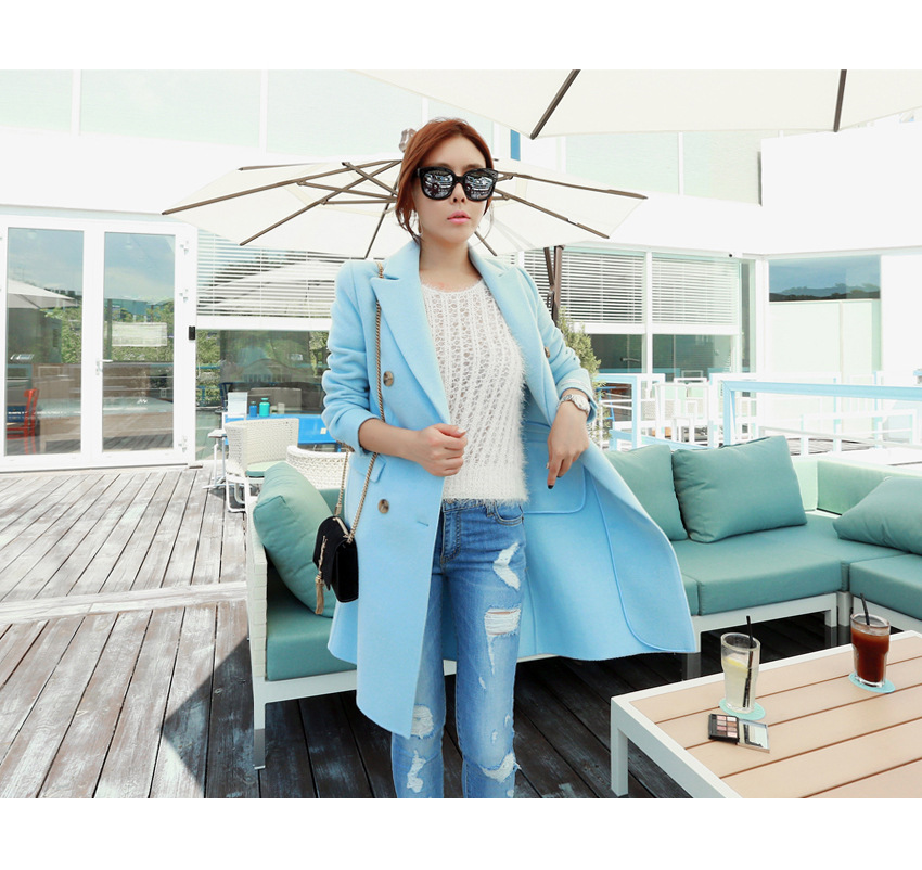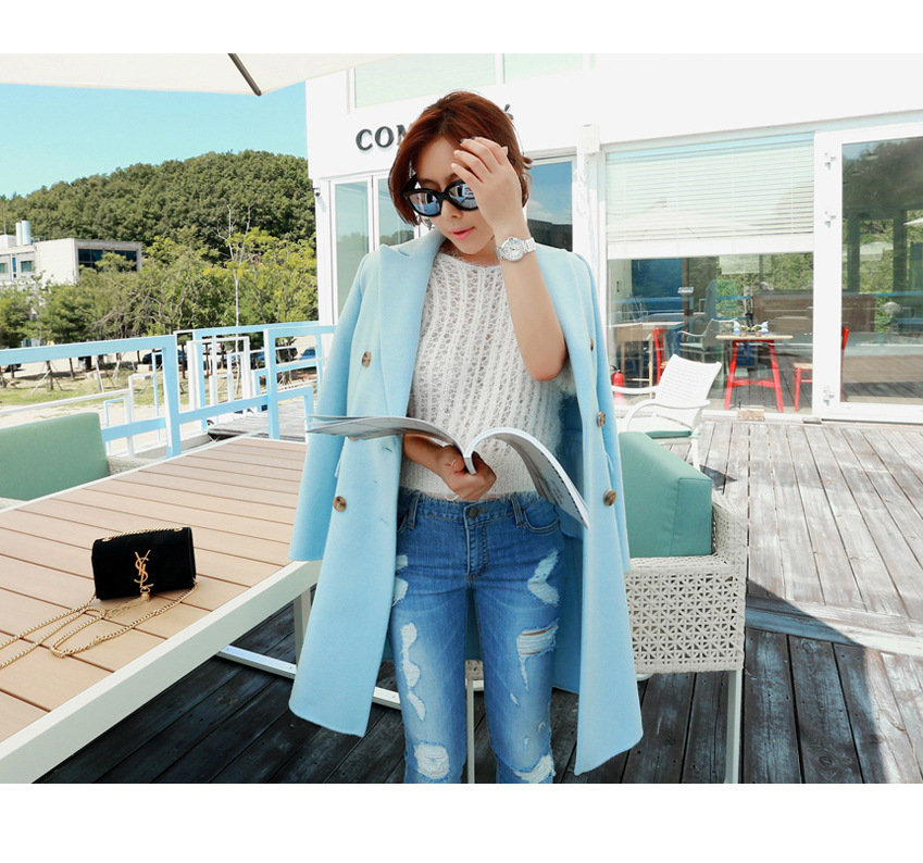 2015秋冬熱銷新款韓版顯瘦雙排扣中長款羊毛呢外套毛呢大衣9522