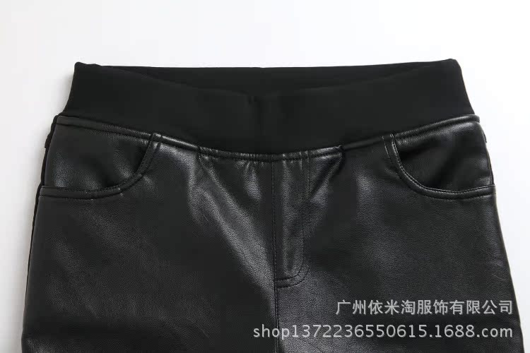 歐美女裝秋冬新款個性拼皮加絨保暖彈力修身顯瘦小腳長褲338474