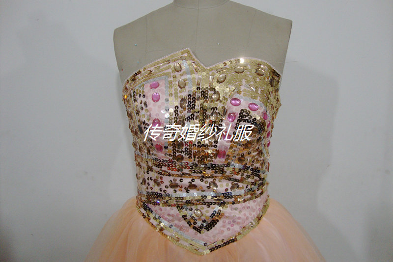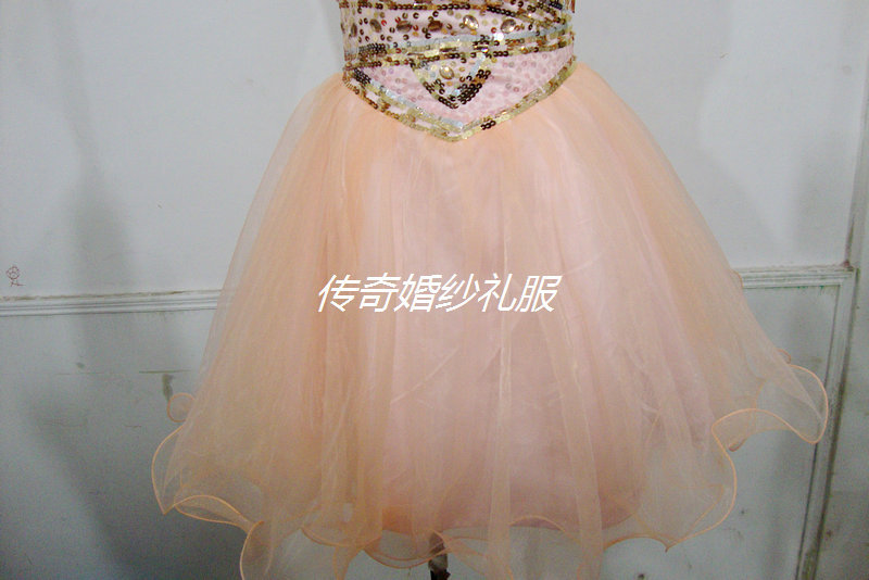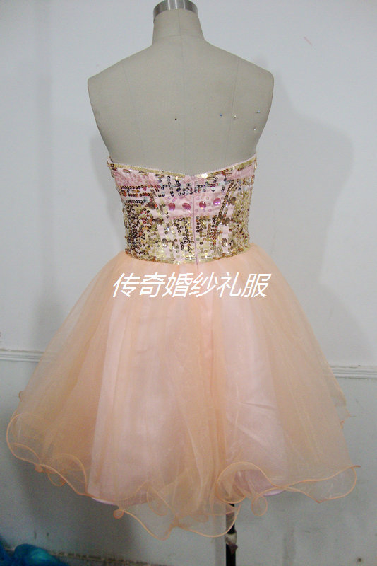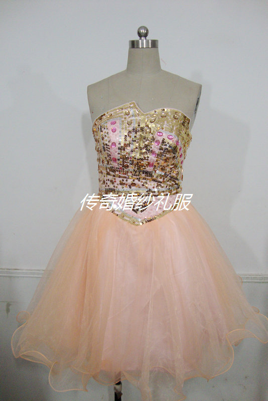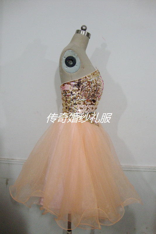傳奇婚紗禮服2012秋冬肉粉色新款不規則胸型太陽擺小禮服實拍