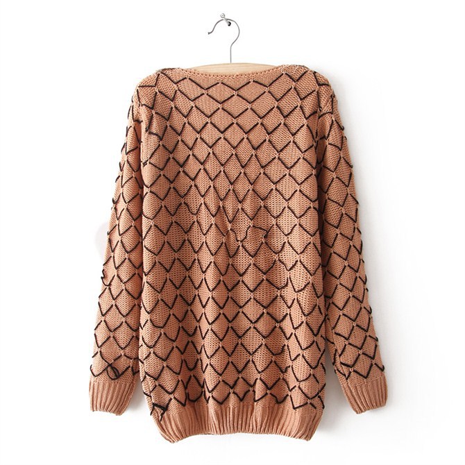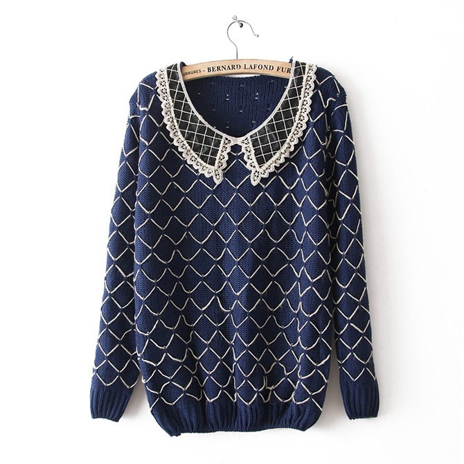 D79-14-012 歐美新款格子領套頭毛衣
