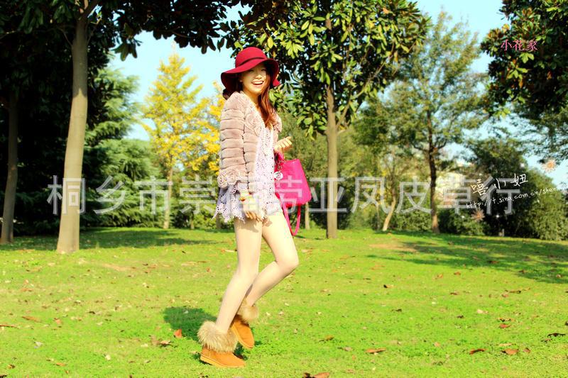 一級草黃兔毛100%,里料:緞面滌綸面料