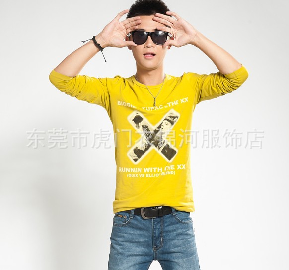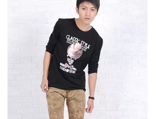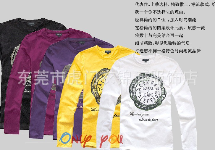【款式】:2013秋裝多款多色男式印花長袖T恤。