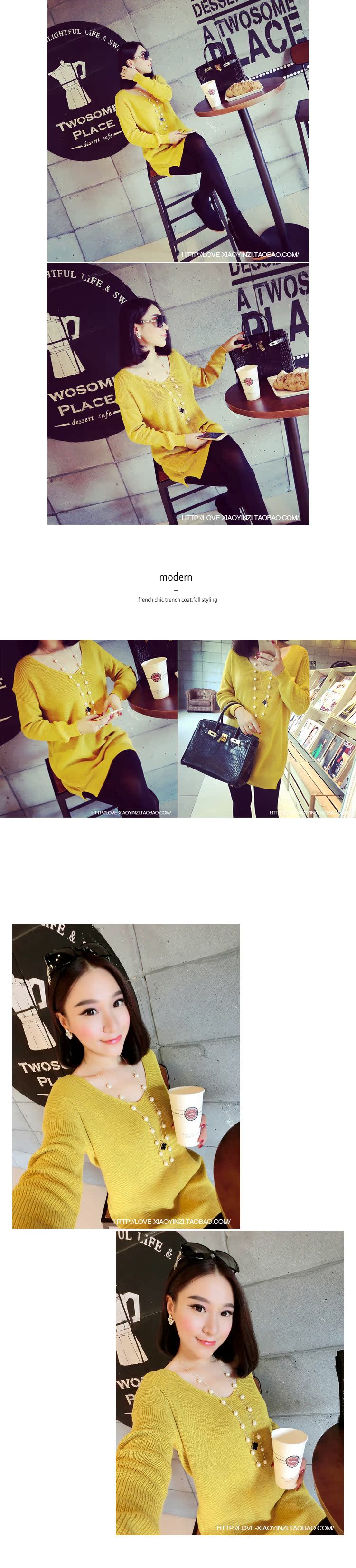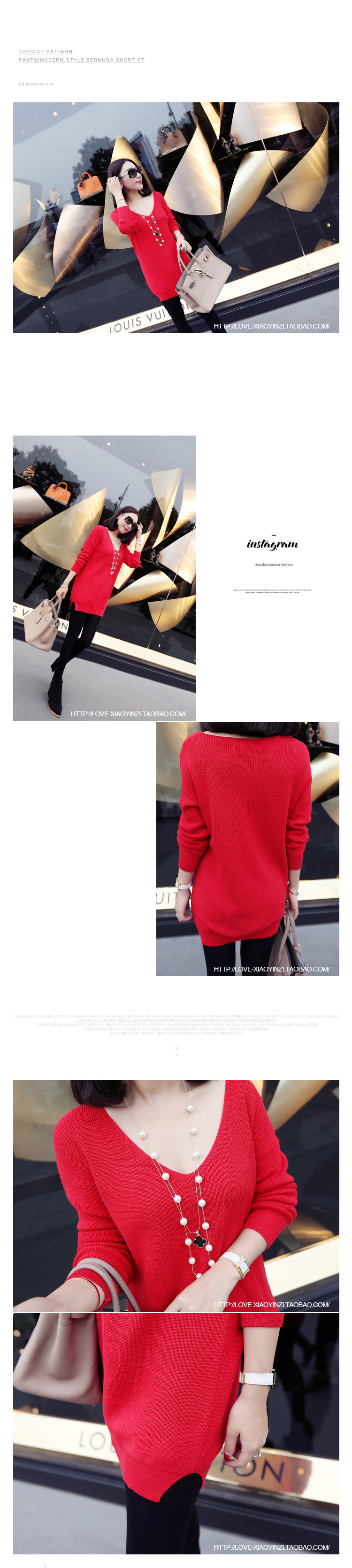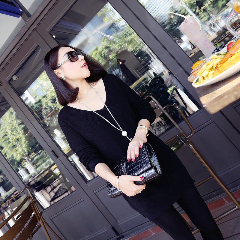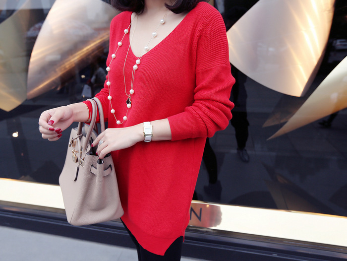 2015春秋新款韓版v領中長款寬松套頭毛衣長袖打底衫批發