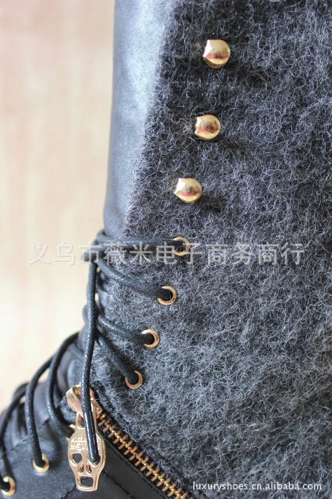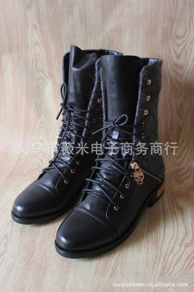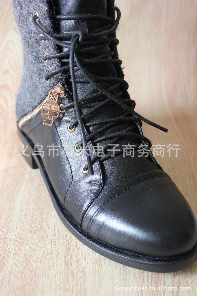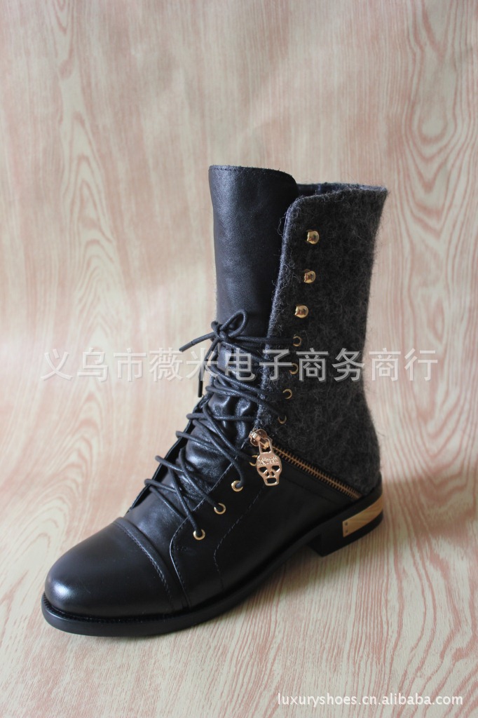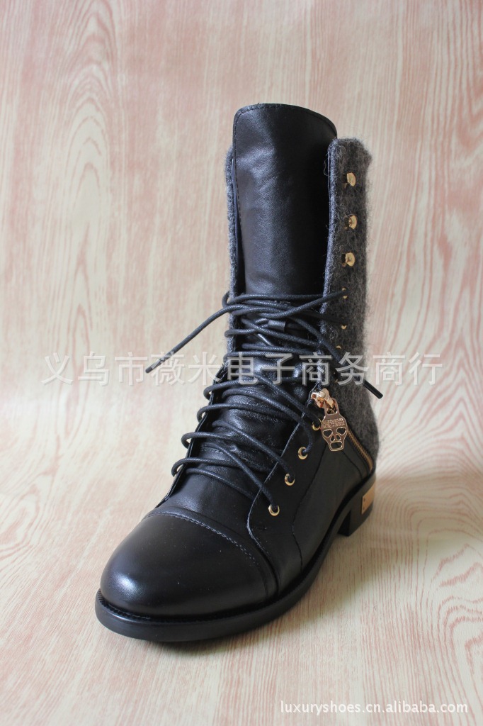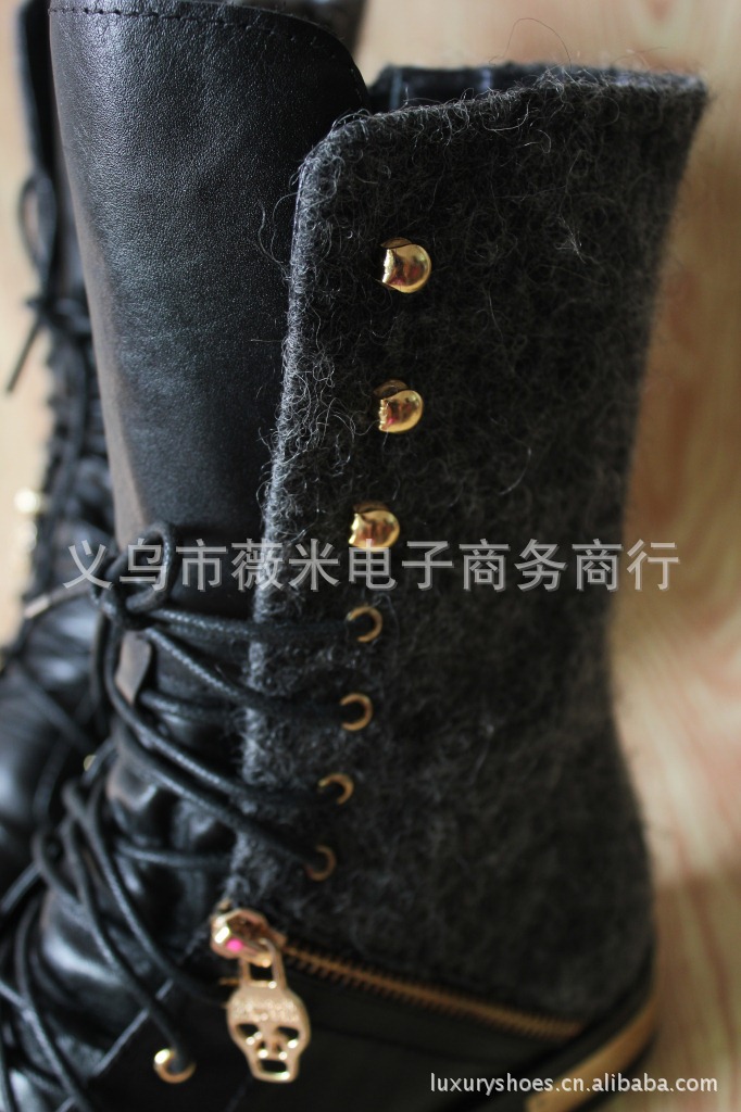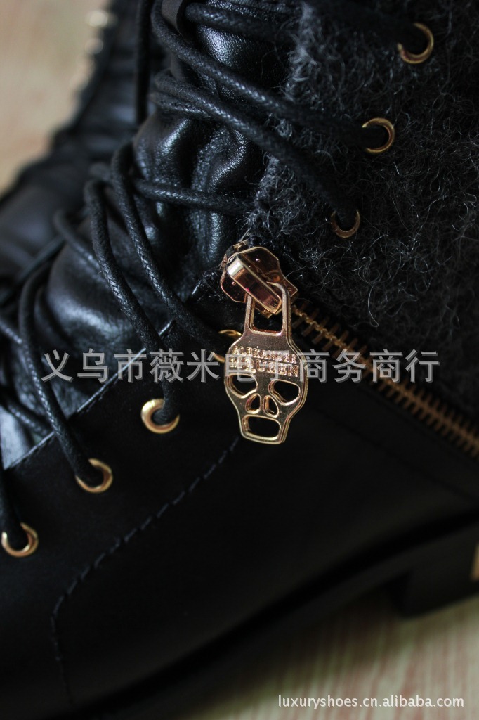 新款羊皮女靴 亞歷山大麥昆款高品質個性時尚中靴馬丁靴批發