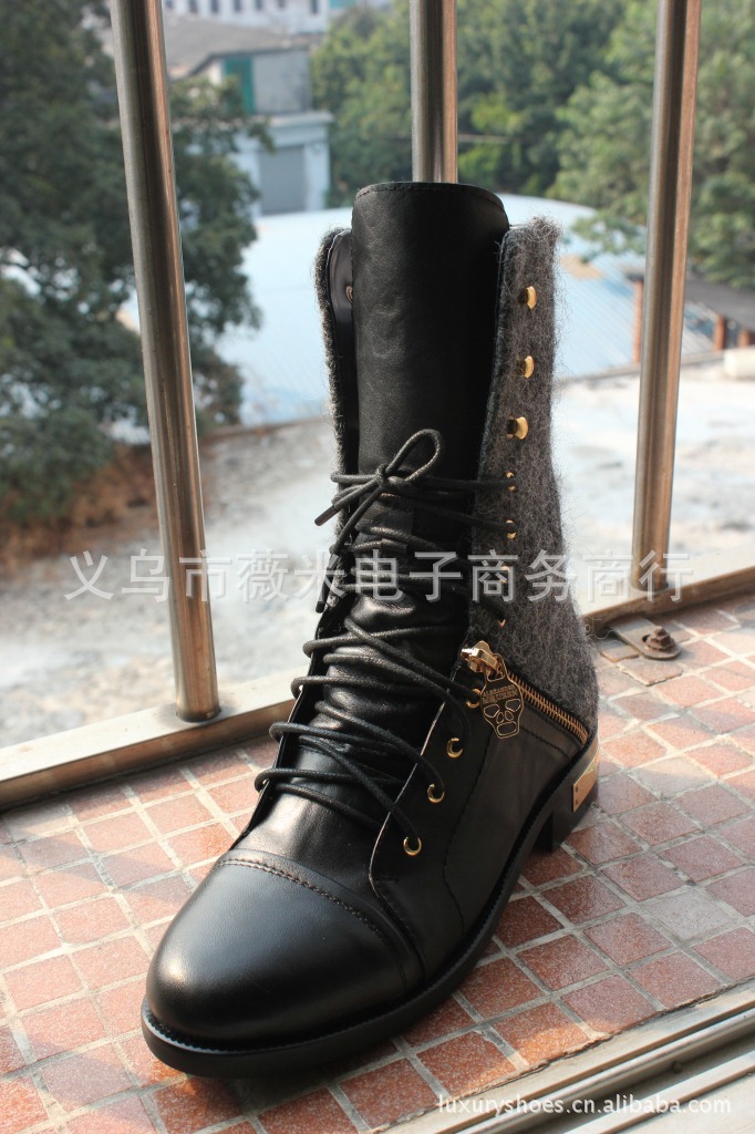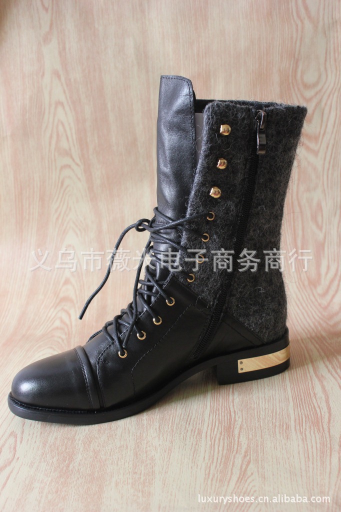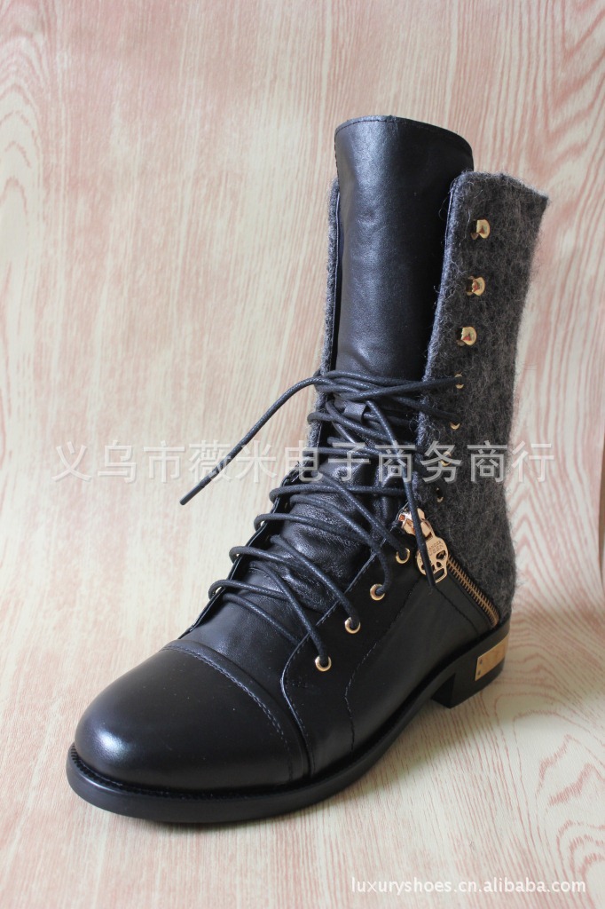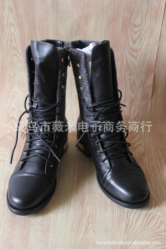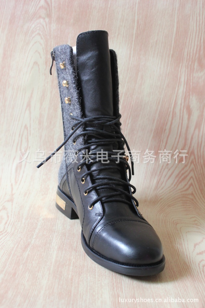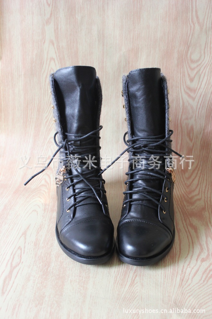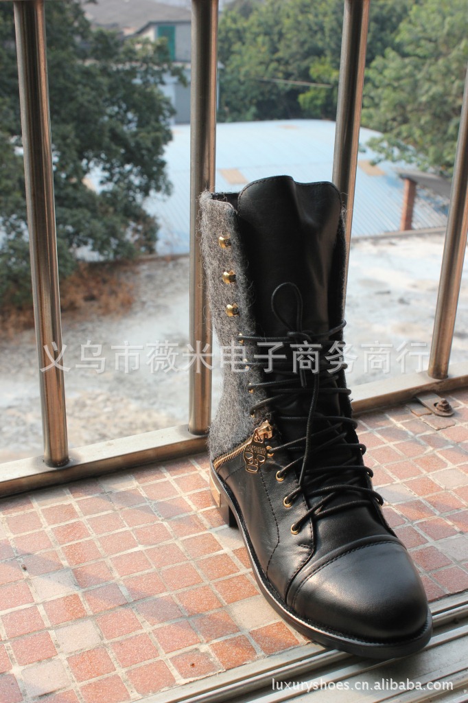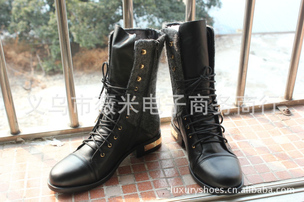 新款羊皮女靴 亞歷山大麥昆款高品質個性時尚中靴馬丁靴批發