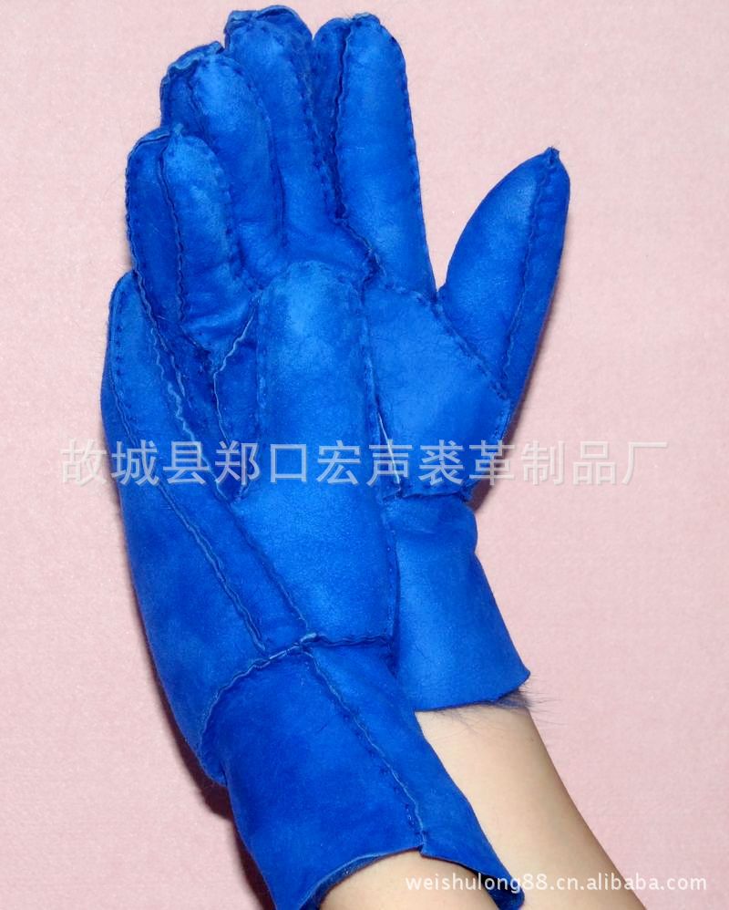 【加工定制】保暖時尚手套,高貴寶藍色羊皮毛一體手套 巨實惠