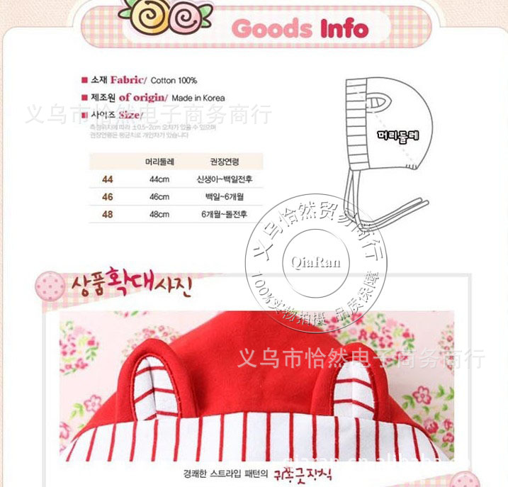 [尺碼]:均碼,0-2歲參考。帽圍46-52CM。