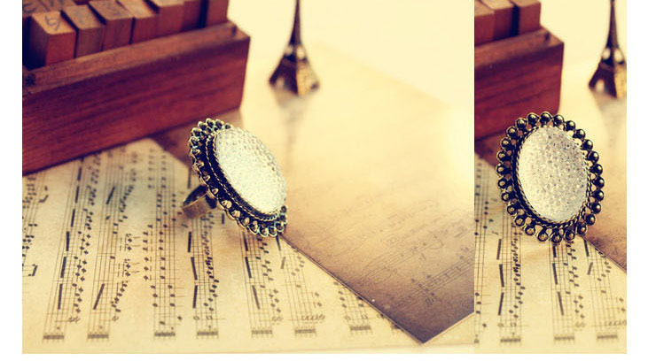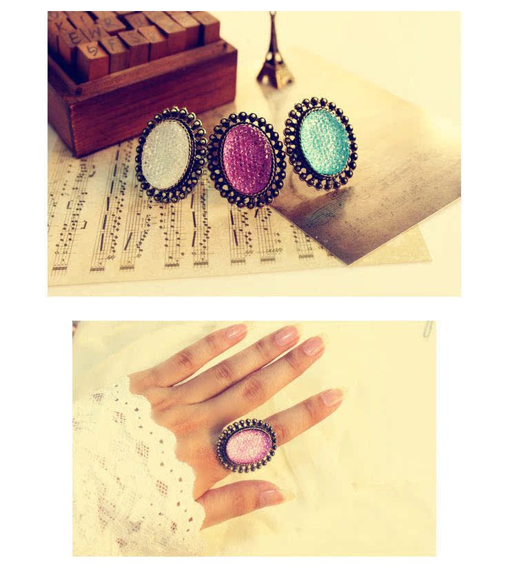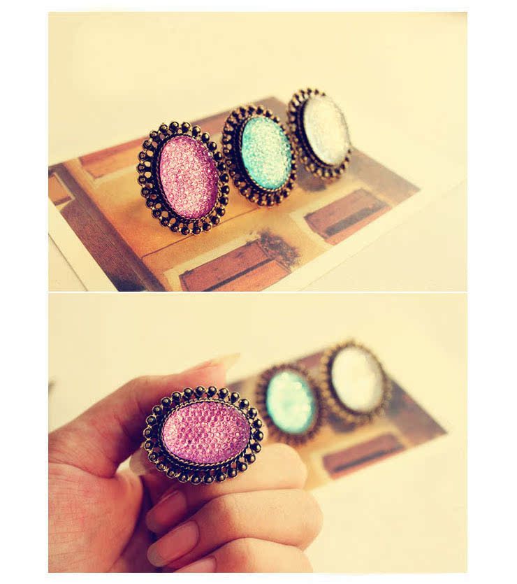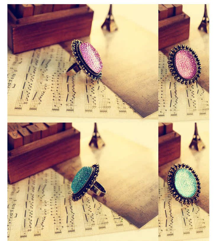 義烏韓版個性時尚復古飾品批發 橢圓鏤空寶石戒指批發