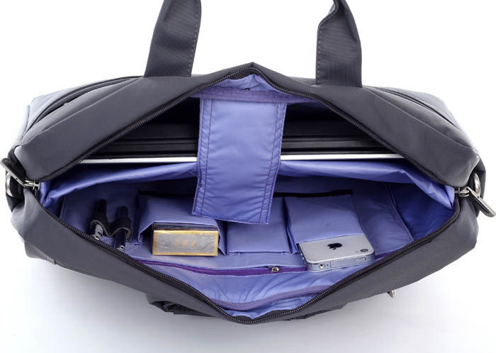 【包包結構】:包包分為兩個隔層,正面個隔層可放一些筆、名片等小件物品。中間的隔層有筆記本專用的防震保護層,防震防摔。背面的小隔層可放一些紙張等。