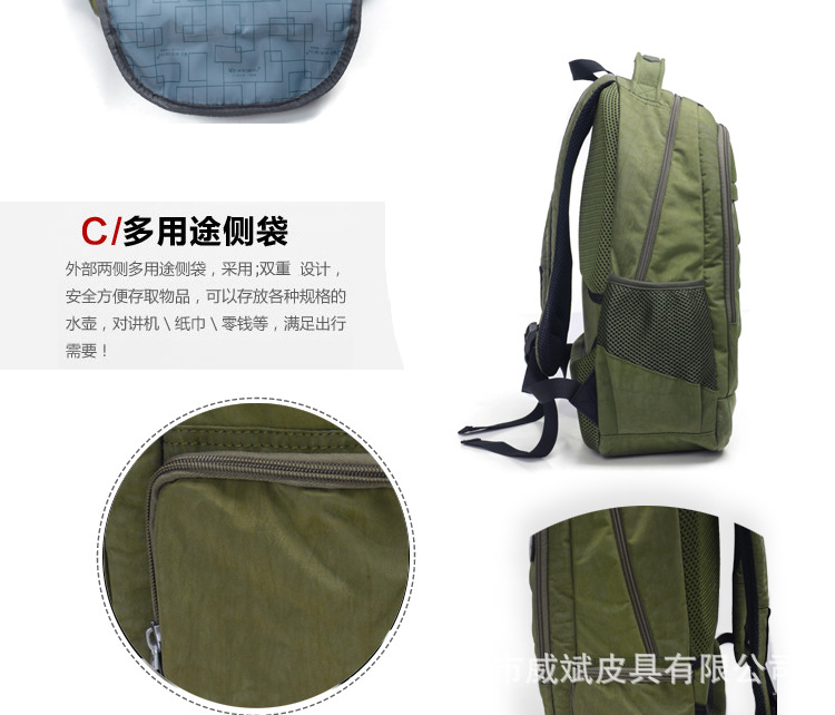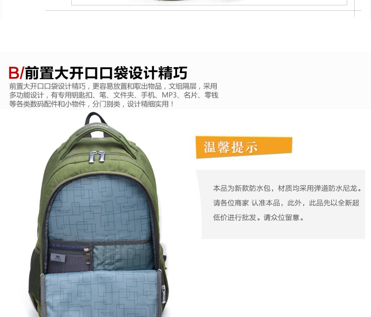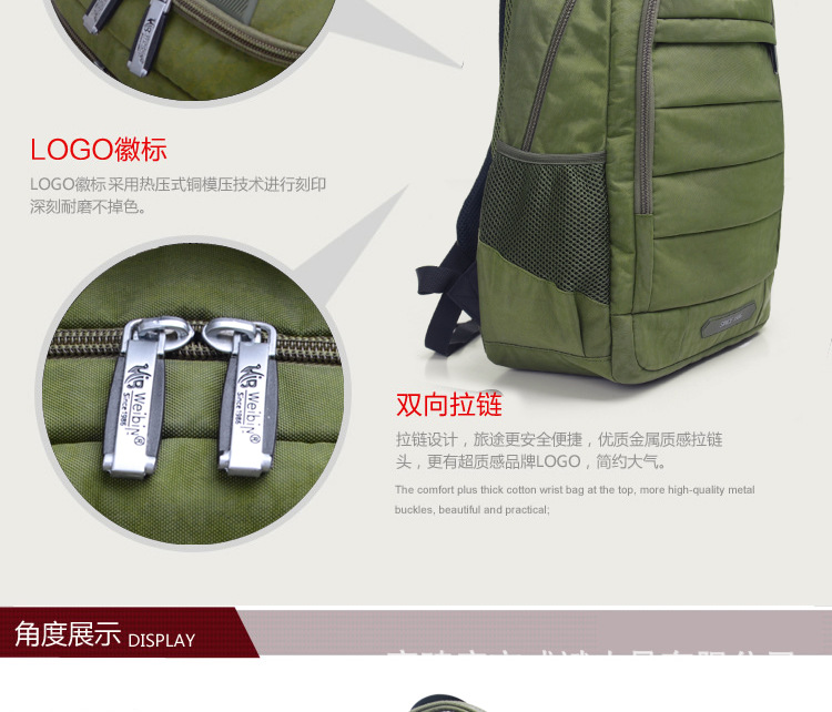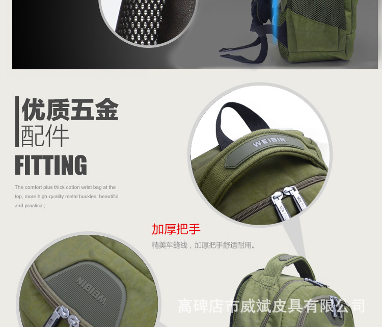 采用尼龍面料,具有防水功能,極其富有質感,做工精致,每一個細節都體現了威斌的不凡魅力。豪華精致的做工與設計搭配富有品位的您,適合任何場合。威斌箱包極盡奢華之設計,顯示您尊榮華貴的象征,體現與眾不同的氣質!讓您脫穎而出,備受注目!此包包人性化,多功能設計,讓您帶著輕松愉快的心情工作休閑!