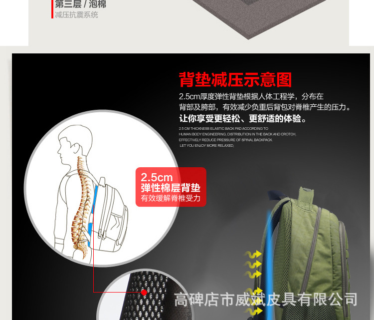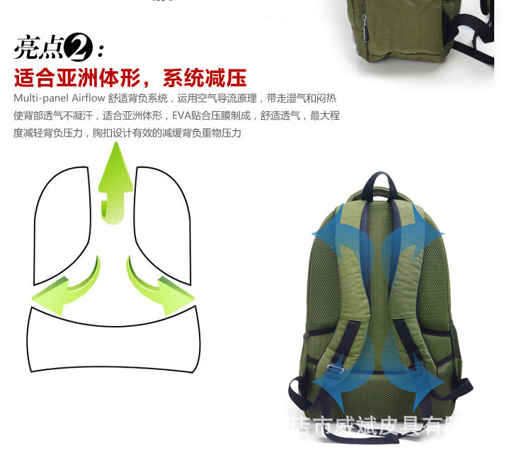 【包包特點】舒適的流水曲線型肩帶,能有效的起到防滑落的作用。厚軟的海綿結構能有效的緩沖外力對肩部,腰部,尾椎部的壓迫,無論您是出差,旅行,還是日常背帶電腦或其他物件,都能很好的保護您的身體及物件不受損傷。肩帶與包身的寬面積自然縫合,完全解決的普通背包肩帶縫合處易于開裂的弊端。