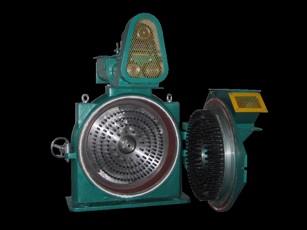 工作原理特性:高油脂、高水分物料的微細粉碎,當物料中水分或油脂含量過高時,采用普通齒爪式粉碎機配備小孔徑篩板粉碎,則會出現堵篩現象,而采用大孔徑篩網,雖然不堵篩,但粉碎粒度可能還達不到所需的細度(如D80達到80目以上),此時就需要采用增加打擊次數的方式來進行粉碎,“針盤磨”具有幾百根像“鋼針”“鋼銷”一樣的粉碎柱,有時也稱為“銷盤磨”,通過高速轉動,有效的將高油、高水、黏性的物料輕松打散、粉碎至微米級粉體。物料在大量針銷形成的強力打擊和風力作用下,快速通過粉碎室,作為成品排出。如果對于產品粒度均一性要求更高,可以選配專業分級機或分級篩組成循環粉碎工藝。