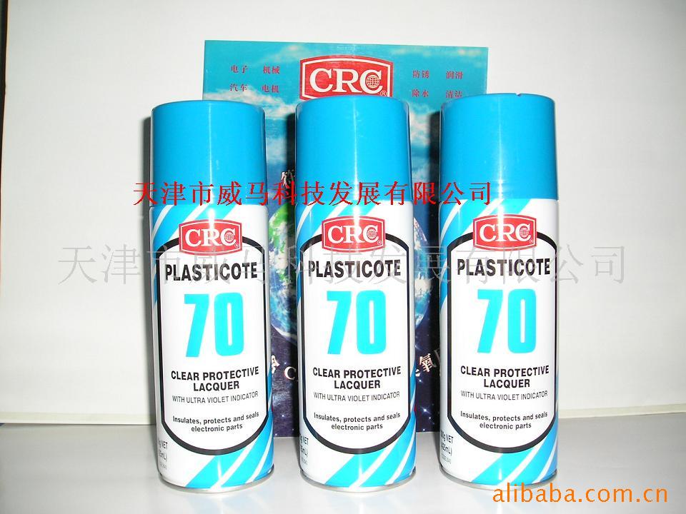 CRC Plasticote 70系透明保護漆,能在各種印刷電路板上生成保護膜,防止漏電和短路。其透明的丙烯酸保護膜能防止弱酸、堿、酒精、潮氣的侵蝕。本品耐高溫,遇熱不會滴落。使用本品保護的線路板可以再上錫。