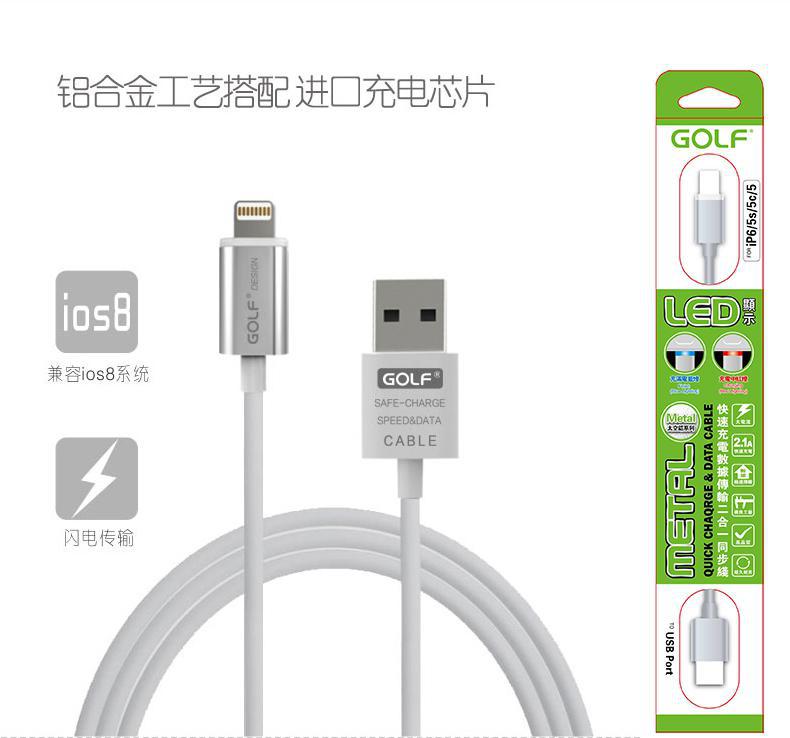 GOLF高爾夫LED發光 iPhone5/6合金數據充電線