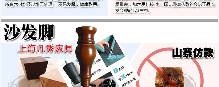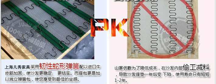 內架是采用實木和人造板材框架結構,主要工藝是對木材進行干燥,防蟲蛀,防螨蟲等特殊工藝處理,以及對每張沙發木架用量的把握,關鍵的是主要用料要有足夠承受力,每一張底架的用料都是經過技術人員的嚴格挑選,而且沙發架關鍵部位(例如:扶手)的制作不僅要經過特殊加固,更要由工作經驗豐富的技術人員親自操作。座面和背面的結構是采用蛇簧或強力橡筋帶及高密度海綿。