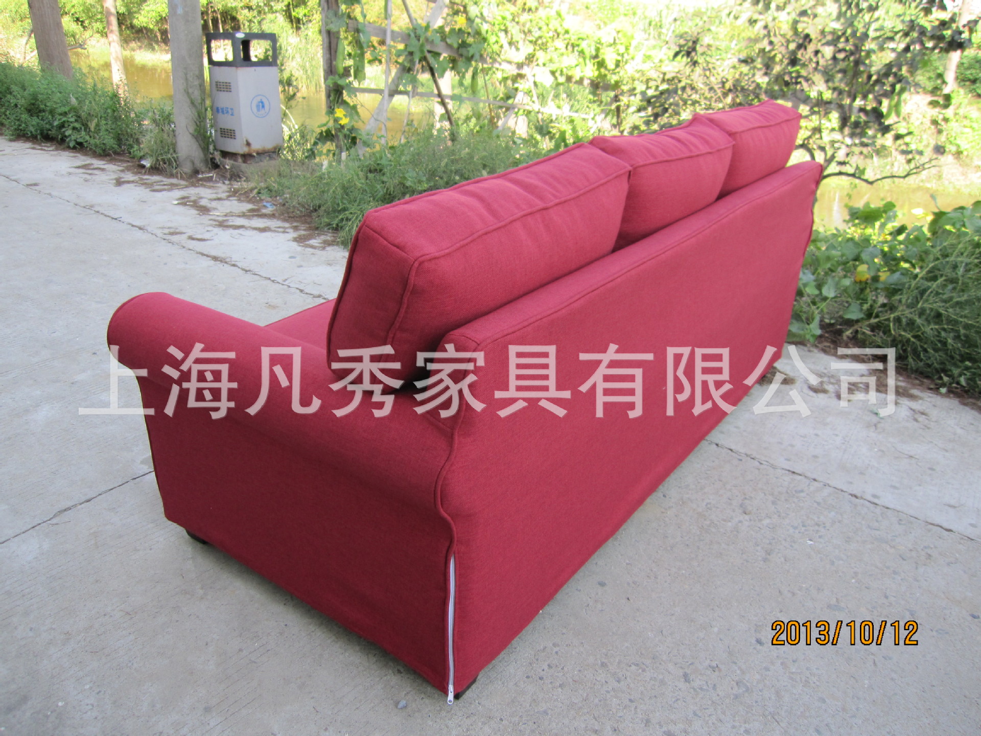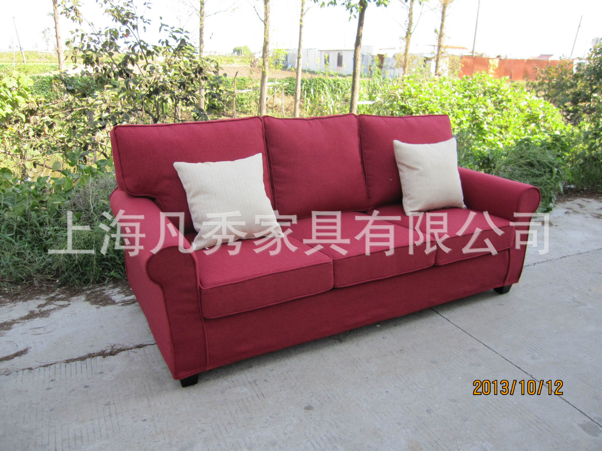 凡秀家居美式布藝三人沙發雙人沙發北歐宜家全拆洗暗紅絳麻面料