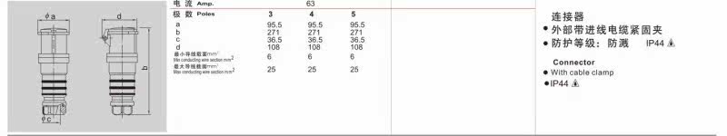 注:TYP 2901外蓋為藍色(230V 63A 3芯)