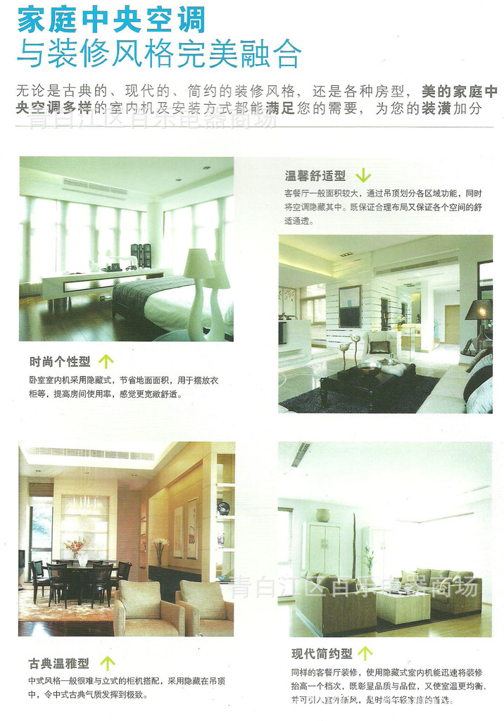 ■室內機采取隱蔽式安裝模式,露出部分僅為送回風口??膳渲眠m當的風口,令空調與裝修風格完美融合,彰顯房間品位。