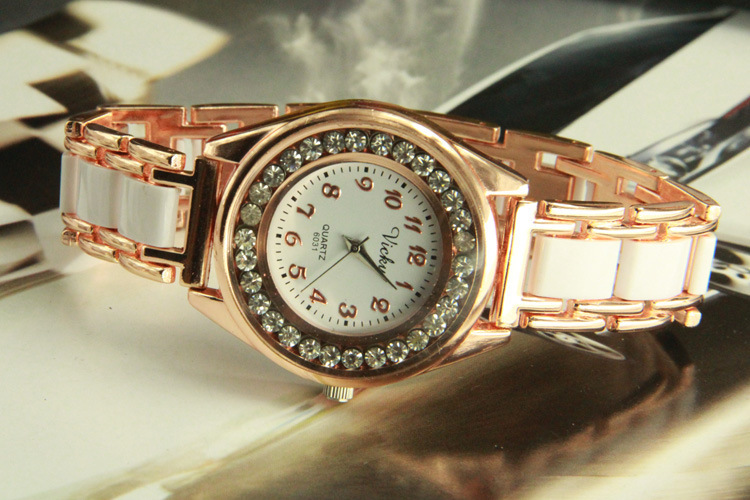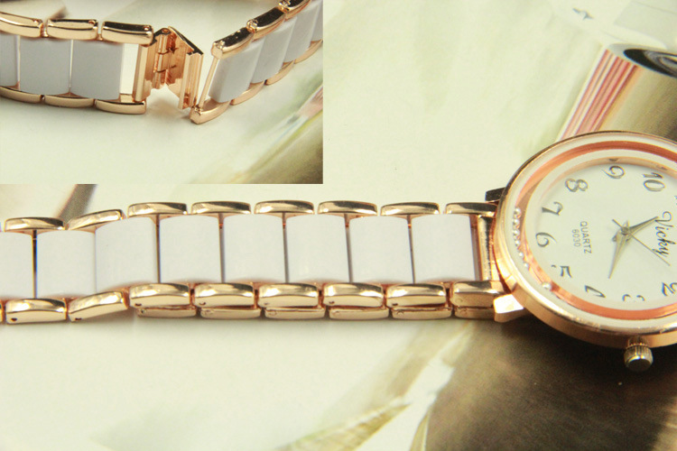批量供應 韓國時尚白色仿陶瓷手鏈表 潮流女士 帶鉆時裝手表批發