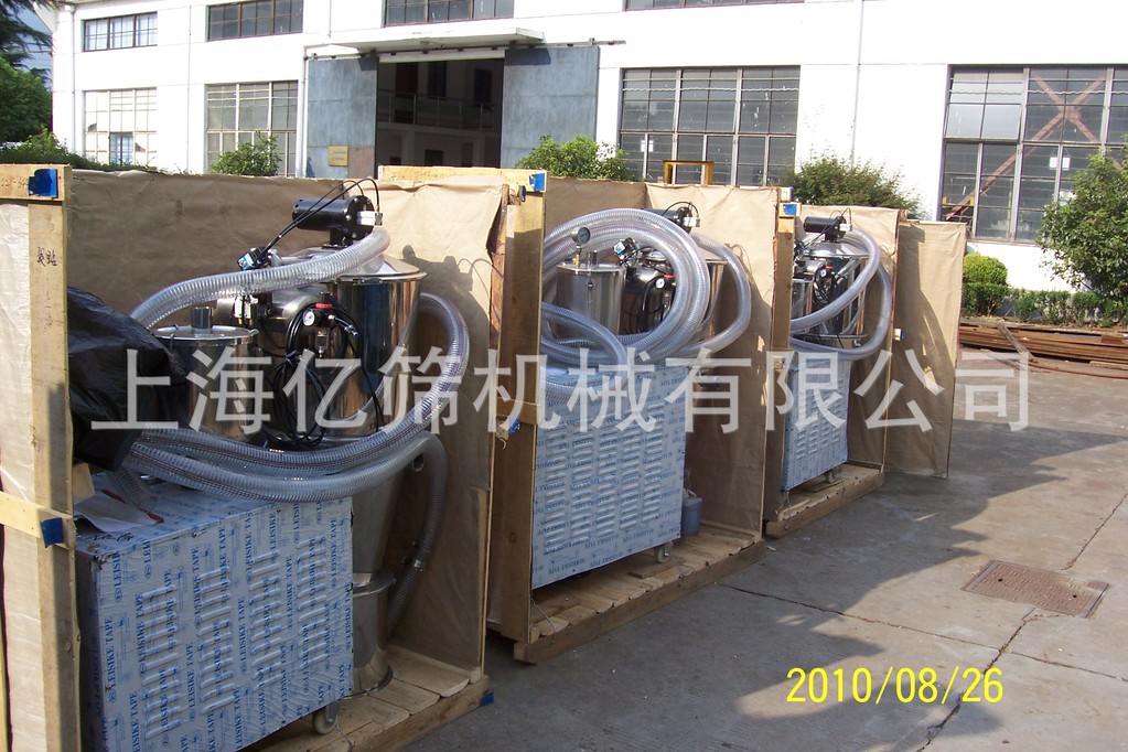我公司生產的真空加料機是在廣泛吸收國外同類產品的基礎上開發研制的新產品,目前它是國內為先進、理想、完善的粉狀料、粒狀料、粉粒料混合料的真空輸送設備。真空加料機能自動地將各種物料輸送到包裝機、注塑機、粉碎機等設備的料斗中,也能直接把混合的物料輸送到混合機(如V型混合機、二維混合機、三維混合機等)中,減輕了工人勞動強度,解決了加料時粉塵外溢等問題,是制藥廠、食品廠通過GMP認證、促進清潔、文明生產的設備。