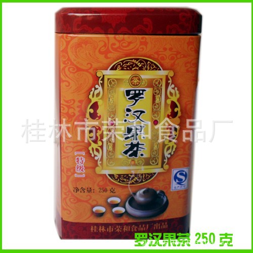 羅漢果茶是由烏龍茶、桂花、羅漢果、甘草、桂皮等八桂特產經特殊工藝制作而成.”。羅漢果為傳統中藥和出口商品之一,營養價值高,是古代唐美人楊貴妃愛喝的一種茶。它味甘甜,具有獨特的潤喉功效。氣味淡而不溥,久而不弱,清而不濁,靜而不散,散而不走。常飲可起到潤肺、止咳、健脾、補腎益腎,治咽炎,降脂降壓之功效(羅漢果含一種比蔗糖甜300倍的甜味素,但它不產生熱量,所以是糖尿病、肥胖等不宜吃糖者的理想替代飲料。