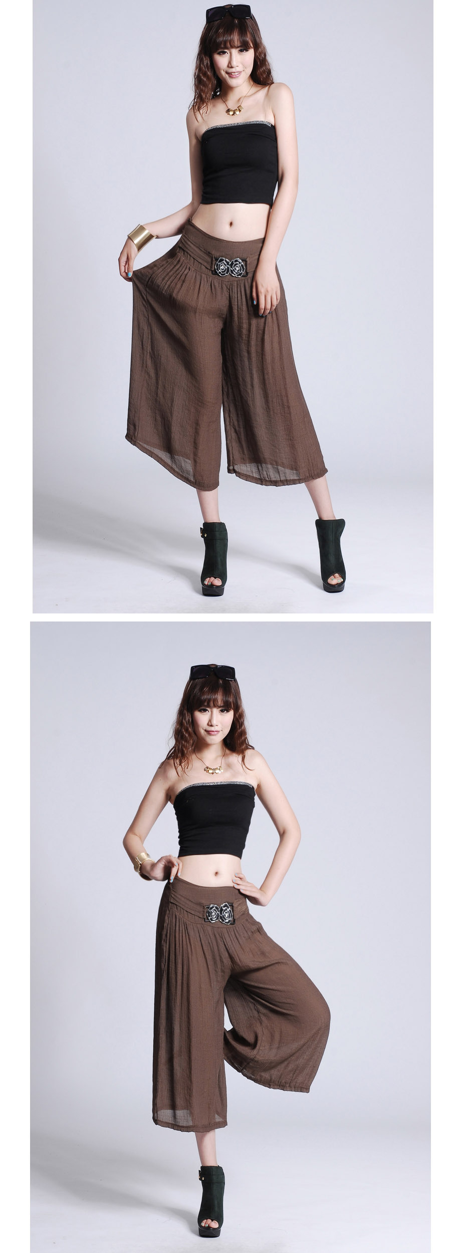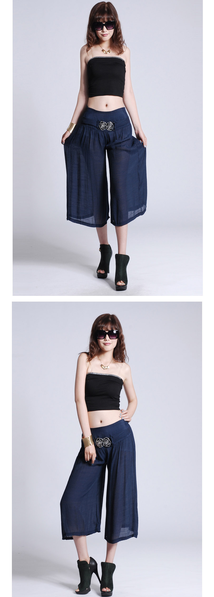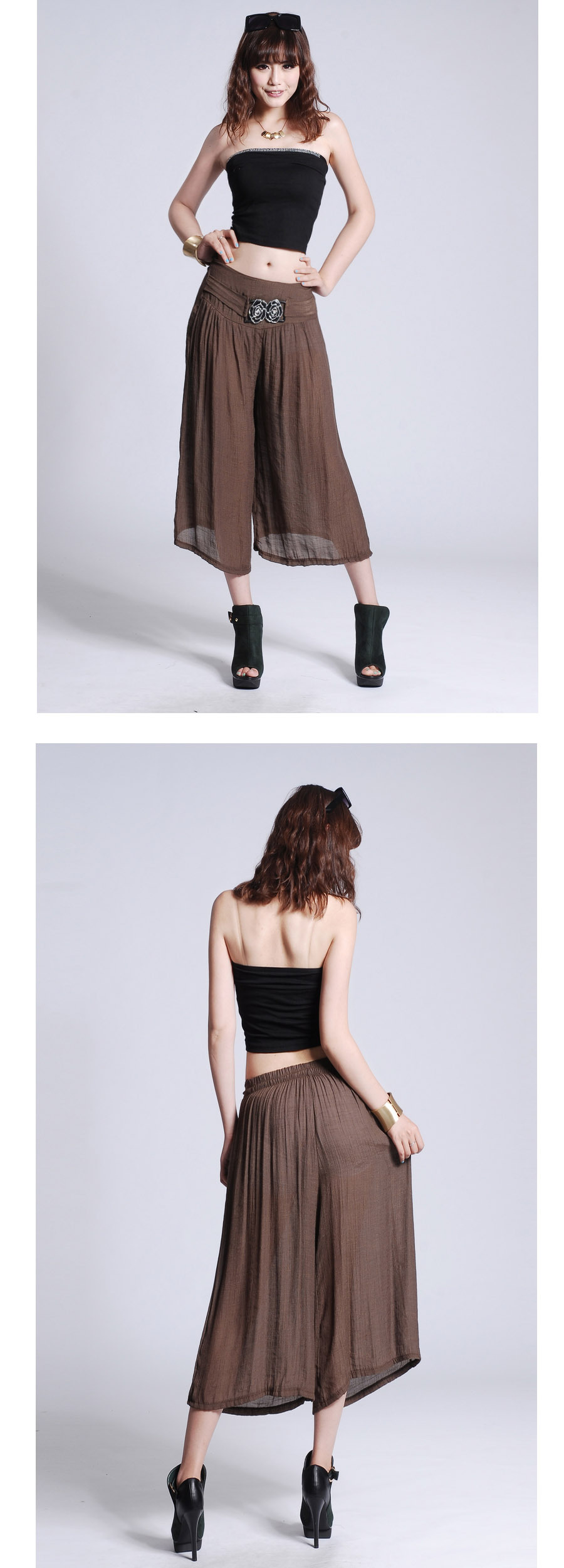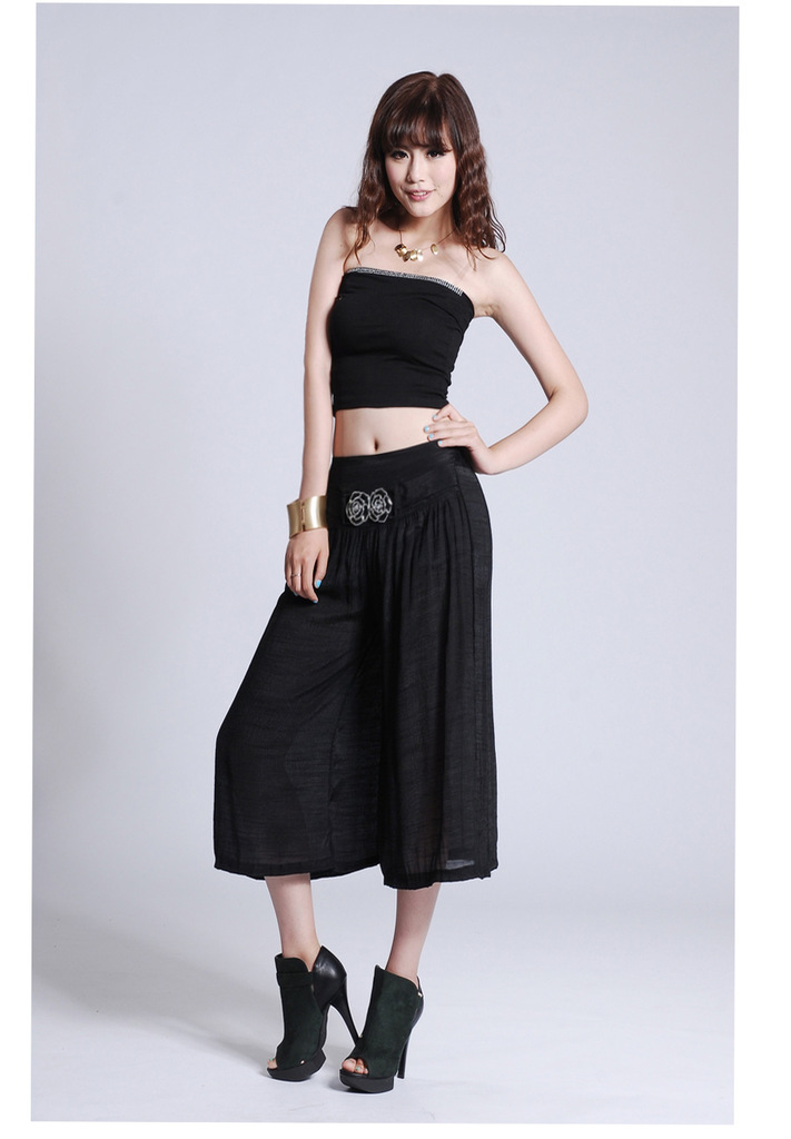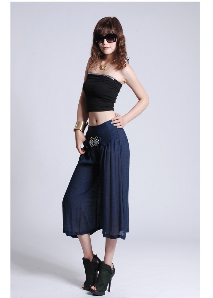 此寶貝特點就是溥而寬松,穿著時尚舒服透氣,面料也是很不錯的棉加麻好面料.寶貝簡單大方適合的年齡跨度很大,只要是成年女性朋友都好穿 產品簡要介紹:清涼夏季 超薄冰絲棉麻闊腿七分褲 裙褲/七分褲裙 休閑燈籠褲