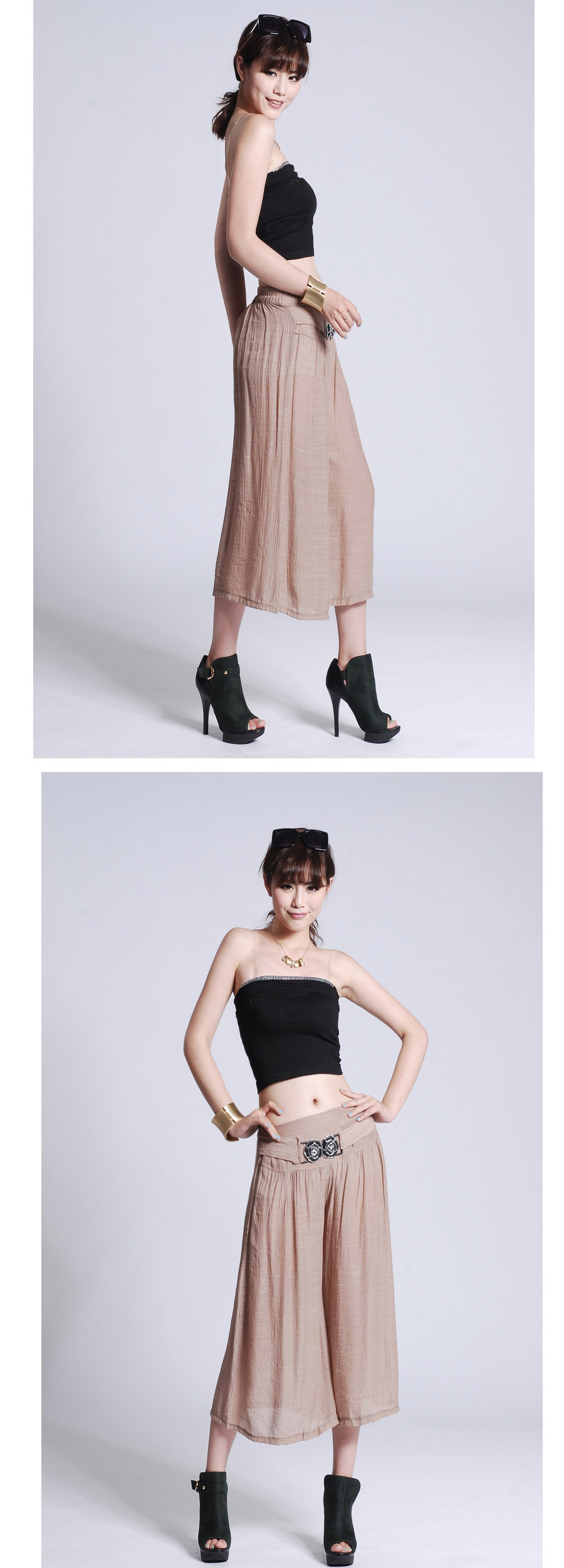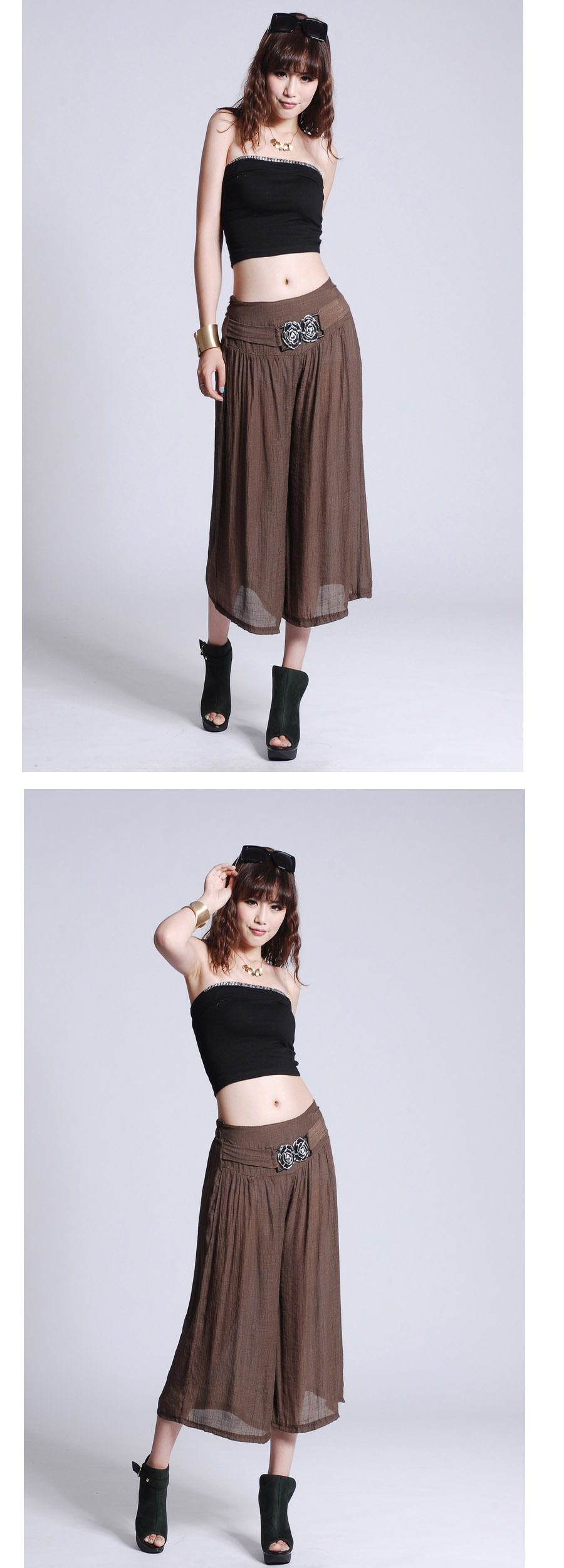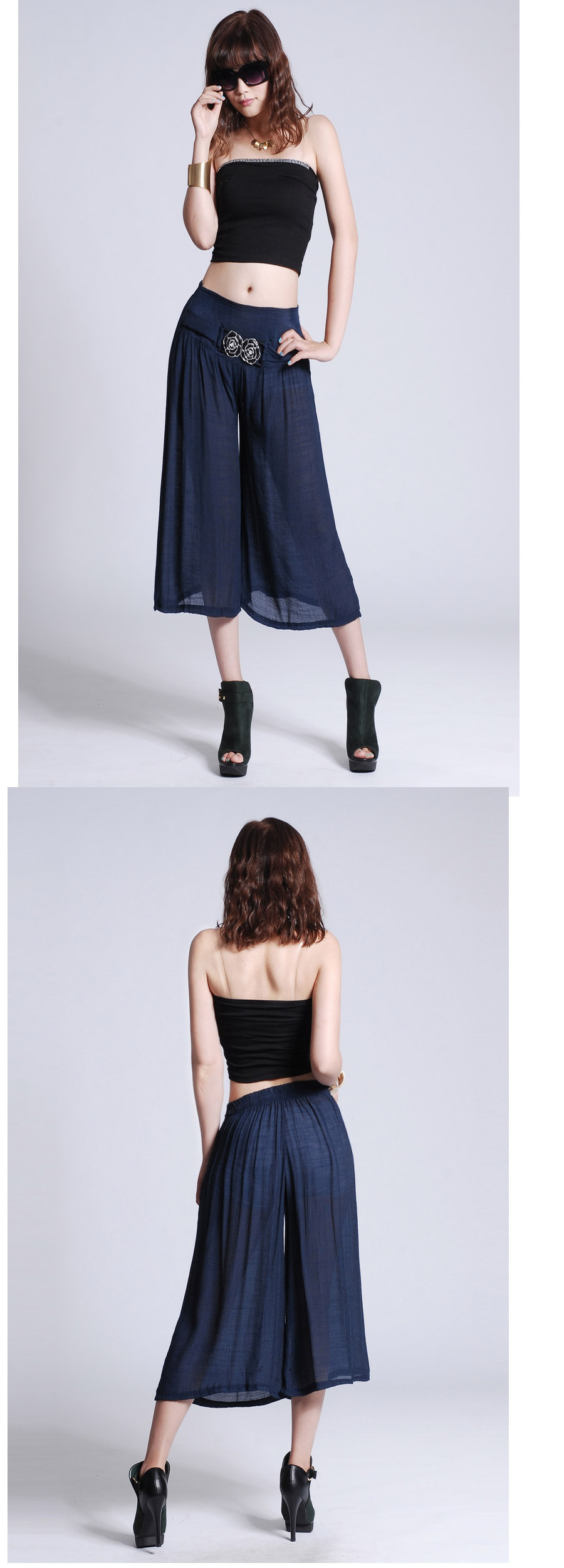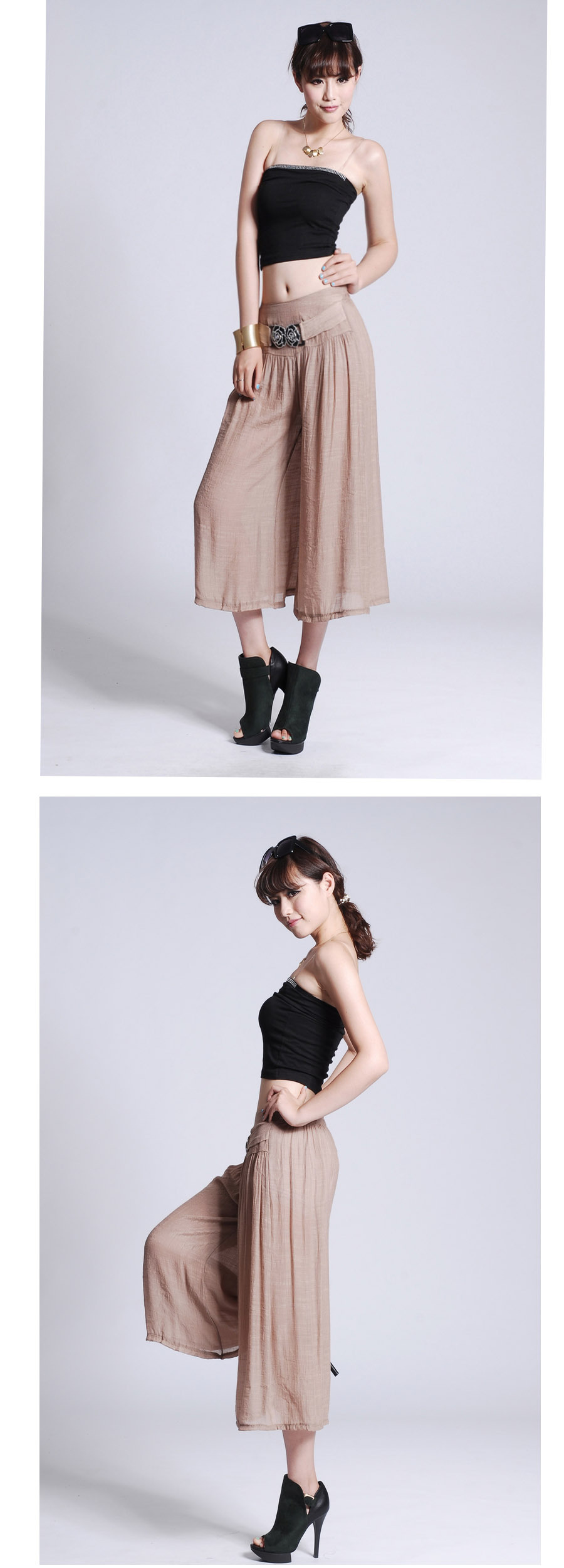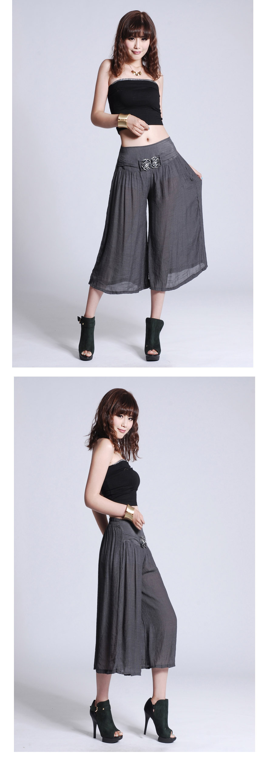 此寶貝特點就是溥而寬松,穿著時尚舒服透氣,面料也是很不錯的棉加麻好面料.寶貝簡單大方適合的年齡跨度很大,只要是成年女性朋友都好穿 產品簡要介紹:清涼夏季 超薄冰絲棉麻闊腿七分褲 裙褲/七分褲裙 休閑燈籠褲
