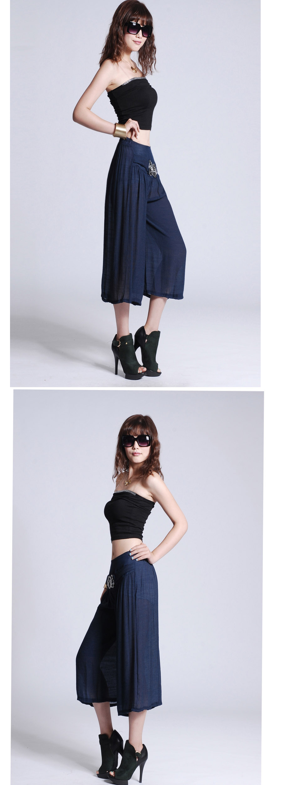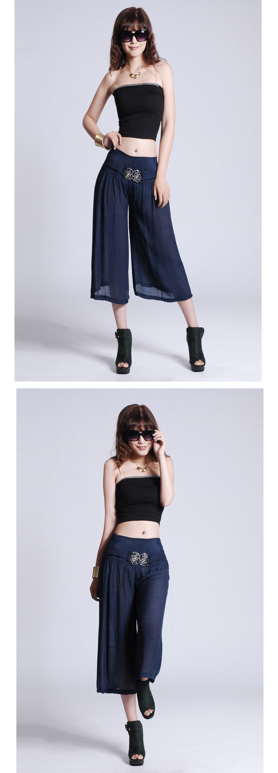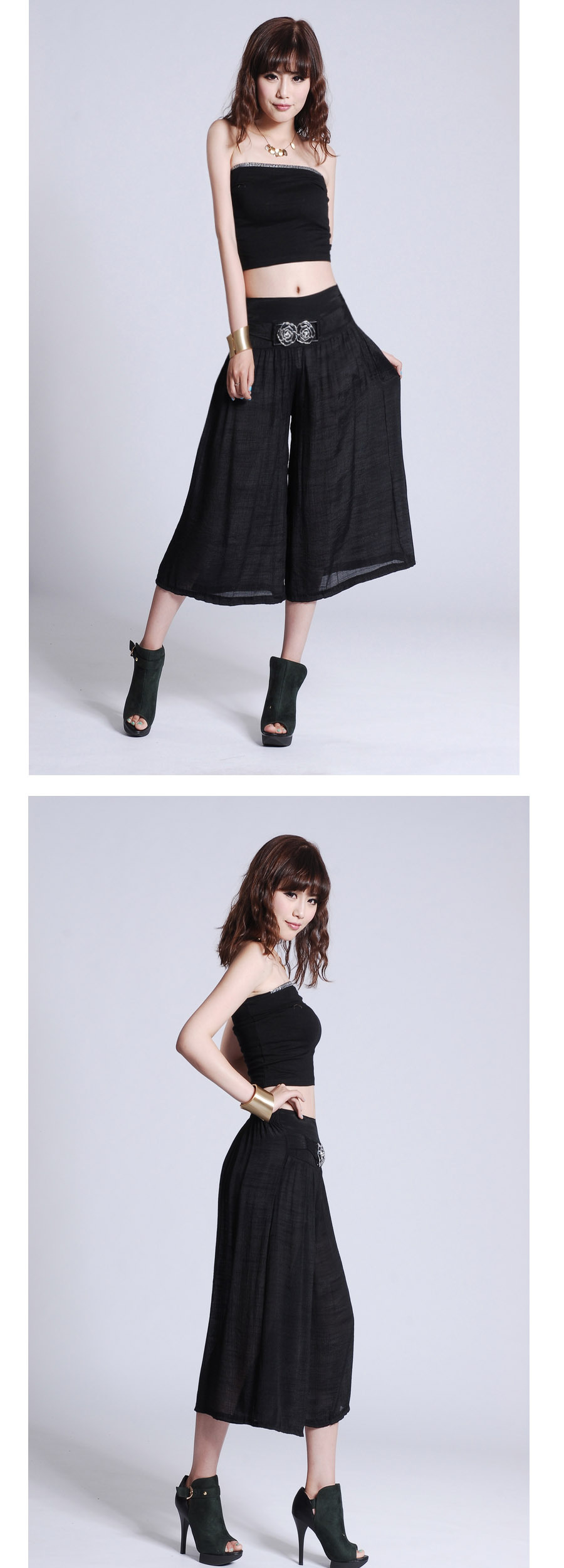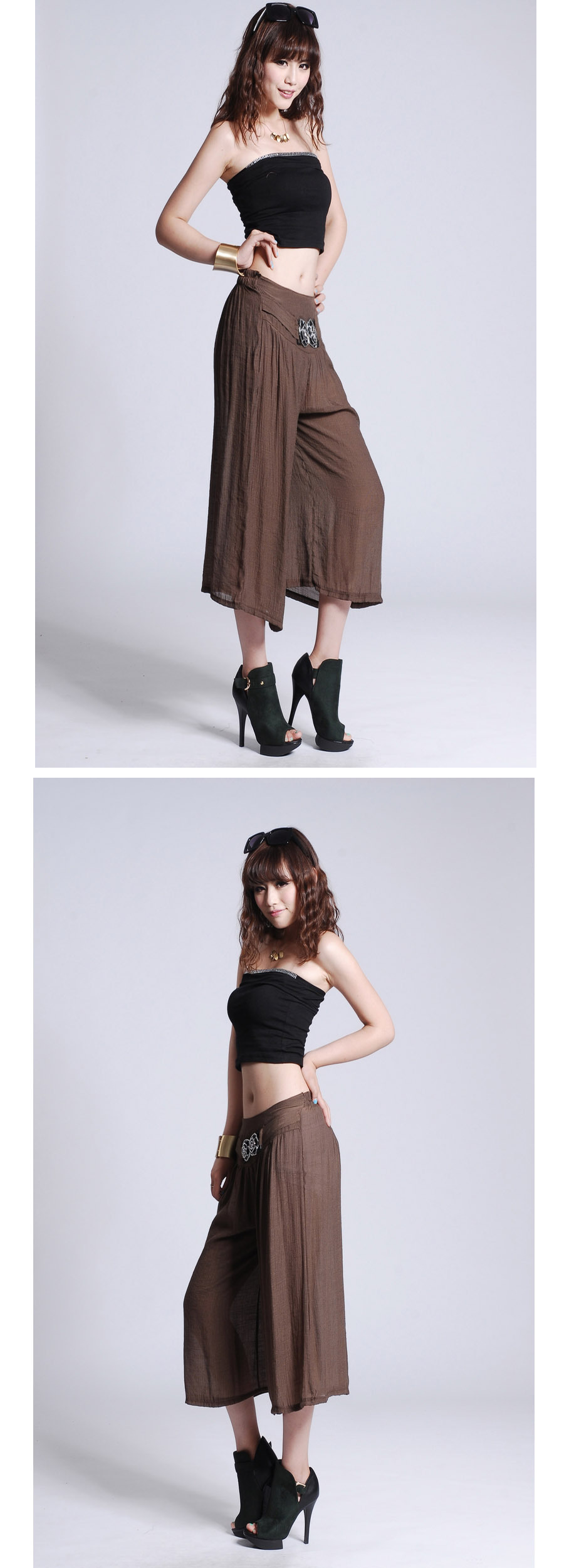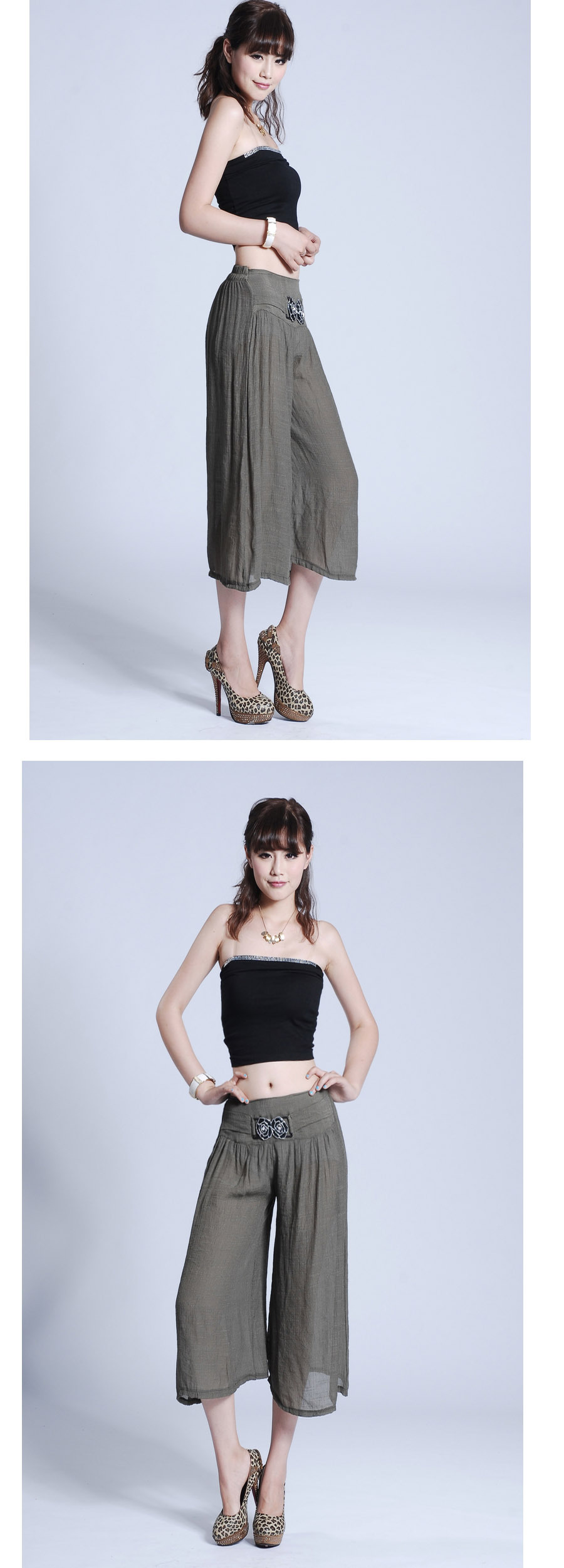 此寶貝特點就是溥而寬松,穿著時尚舒服透氣,面料也是很不錯的棉加麻好面料.寶貝簡單大方適合的年齡跨度很大,只要是成年女性朋友都好穿 產品簡要介紹:清涼夏季 超薄冰絲棉麻闊腿七分褲 裙褲/七分褲裙 休閑燈籠褲