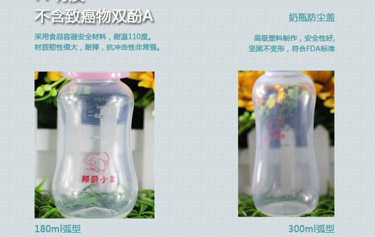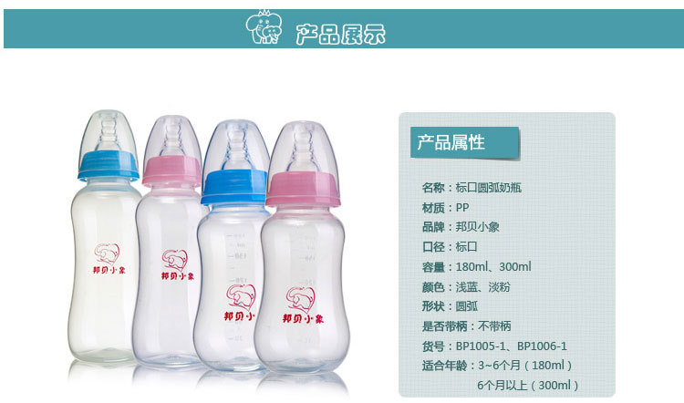 外貿出口品質母嬰用品批發一件代發BP1005-1標口圓弧奶瓶180ml