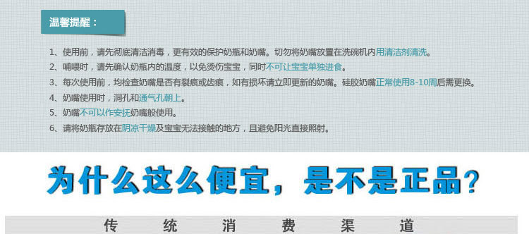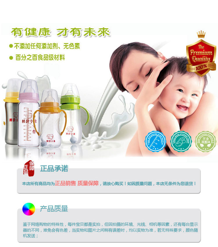 邦貝嬰兒用品有限公司經銷批發的產品有奶瓶、奶嘴、母乳喂養配件、媽媽護理等其他配件的母嬰用品暢銷消費者市場,在消費者中享有較高的地位,公司與多家零售商和代理批發商建立了長期穩定的合作關系.我司實力雄厚,重信用、守合同、保證產品質量,以多品種經營特色和薄利多銷的原則,贏得了廣大客戶的信任,在業界站穩了腳步.
