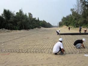 e.凸結點鋼塑土工格柵比其他產品有強度大、高承載力 、不腐蝕、耐老化、花紋摩擦系數大、孔眼均勻、施工方便、使用壽命長等特點。