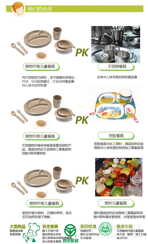 以“稻殼”為生產原料制成.注重健康和環保概念。各項衛生指標均符合國家食品衛生標準和美國FDA衛生標準;已通過SGS檢測,符合歐盟檢測指標;對兒童身體健康無任何危害,并且丟棄后在自然環境下可以降解;是我們日常生活中,消除白色污染、保護資源和生態環境必不可少的綠色產品。