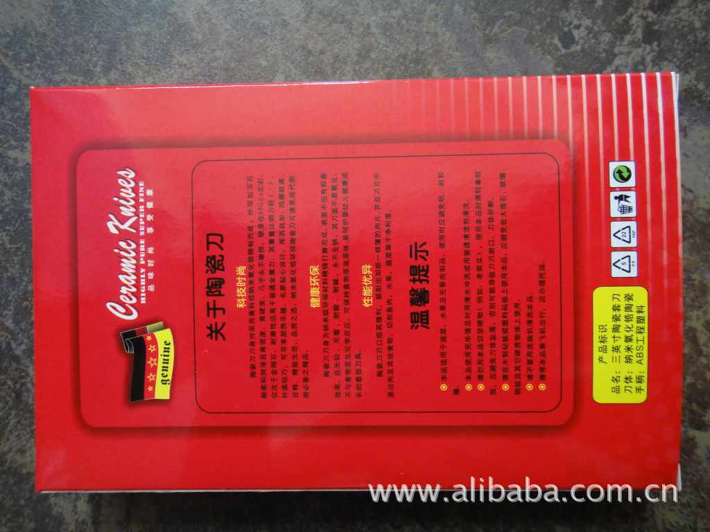 陶瓷刀采用ZrO2高溫合成制造工藝,造成具有鉆石般特征的材料,并用于制造日用刀具。是具有高科技含量的高品質的時尚刀具。陶瓷刀是一種環保、耐酸、耐堿、永不生銹的實用刀具,具有“貴族刀”紙美稱,是世界上的綠色產品之一。它適用于切削無骨肉、瓜果、蔬菜、面包等食物。它是一種無味、無鉛、無毒、無重金屬離子成份得綠色環保材料。隨著陶瓷刀具的材料性能不斷改進,環保型的陶瓷刀具將會跨越金屬刀具而成為大眾化得家居刀具。