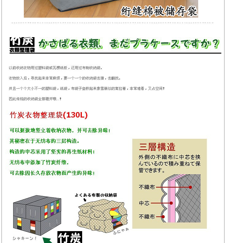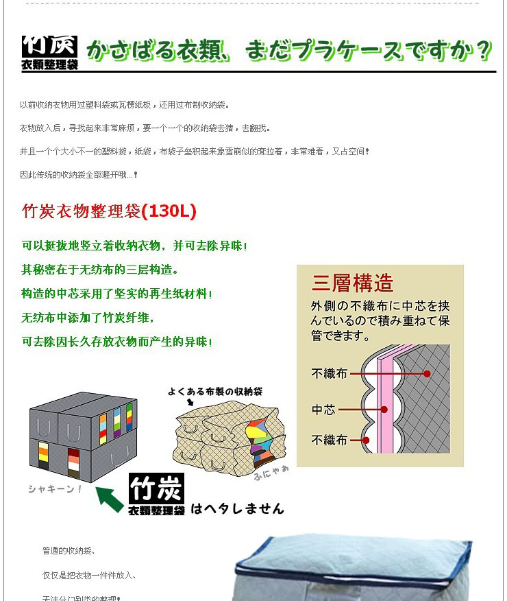 直到遇見了這個竹炭衣物整理袋(130L);之后、我家的衣物收納發生了革命性的變化!