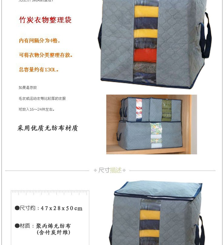 可去除異味的竹炭衣物整理袋(130L)